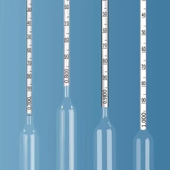 用途;玻璃浮计使用非常广泛。用以测定各种酸、碱、盐等水溶液的密度和比重。例如酸类的硫酸、硝酸、盐酸和有机酸无机酸等。还可以测定甲醛、乙醛、乙醇等等溶液。
