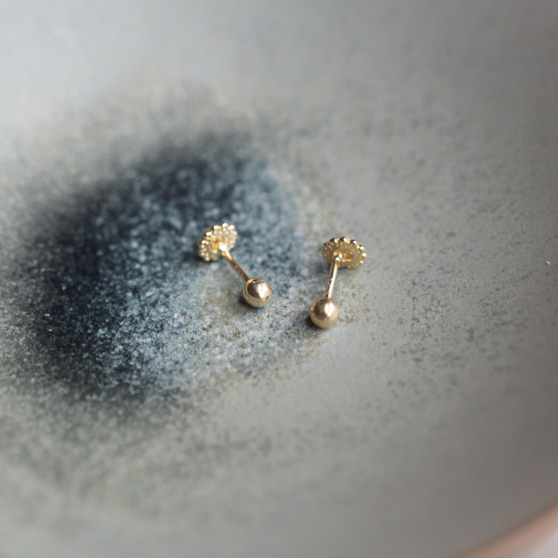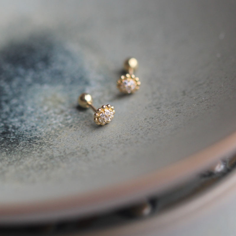 Маленький Подсолнух уха кость гвоздь чистое золото 9K маленький Цирконий Бриллиант Мини спальный носимый маленький цветок уха гвоздь