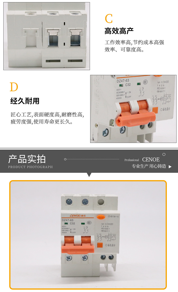 Пластиковый корпус бытовой малый выключатель утечки DZ47LE-63-2P-C32 воздушный переключатель с защитой от утечки
