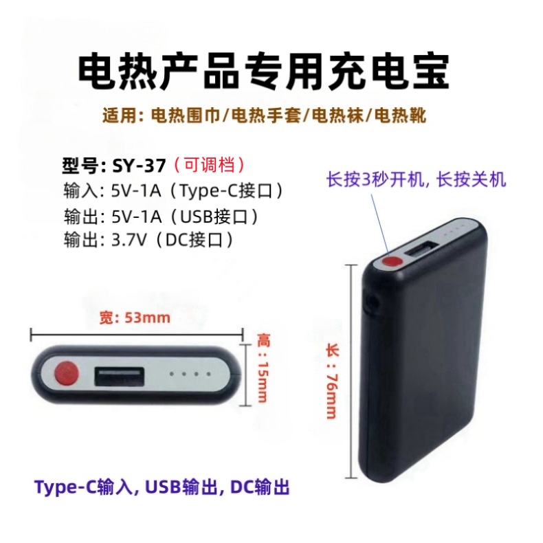 1、电热袜子和充电宝是分开售卖,建议配套使用我厂生产的电热袜子专用充电宝!