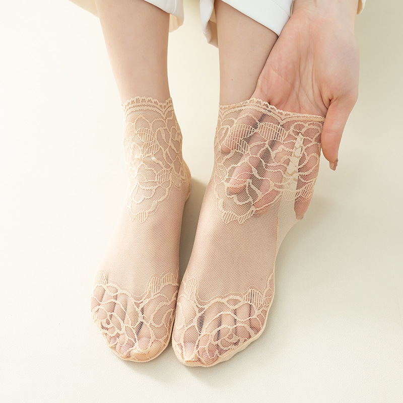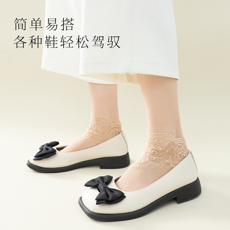 Кружевные носки до середины икры на хлопковой подошве розового цвета, сетчатые носки, не падающие, нескользящие носки-лодочки, невидимые носки оптомwazi