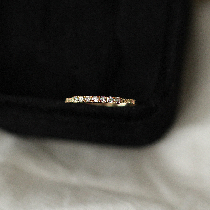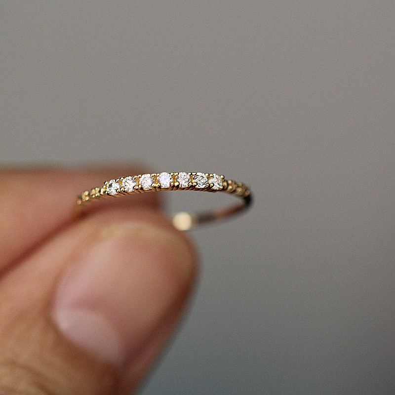Тонкое кольцо из чистого золота 14 карат с циркониевыми бриллиантами, можно носить в комплекте с другими кольцами, очень тонкое и универсальное 1301