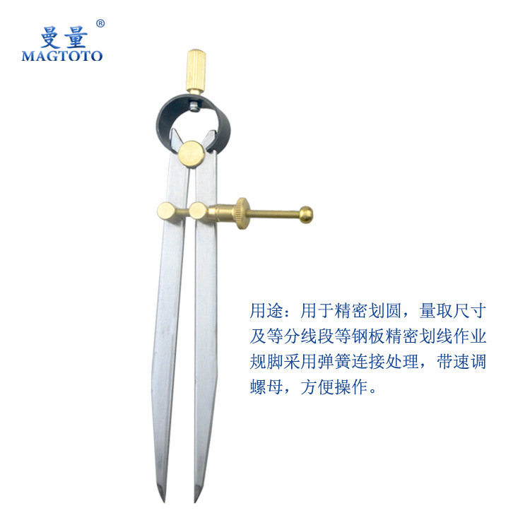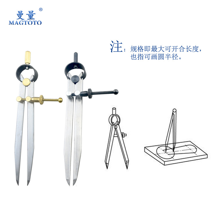 用于划圆、皮革划边线、铁板及钢板上做标记、量取尺寸 及等分线段等钢板划线作业 规脚采用弹簧连接处理,带速调螺母,方便操作。多种规格款式可供选择,如需购买400mm以上规格,可咨询客服。