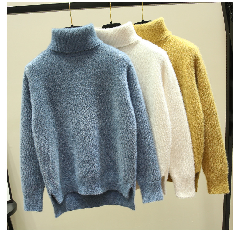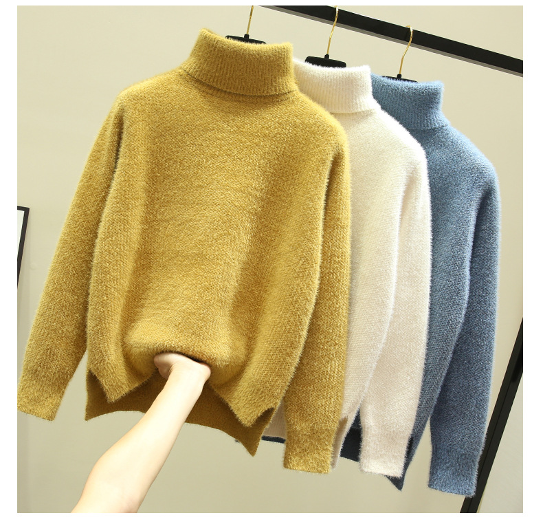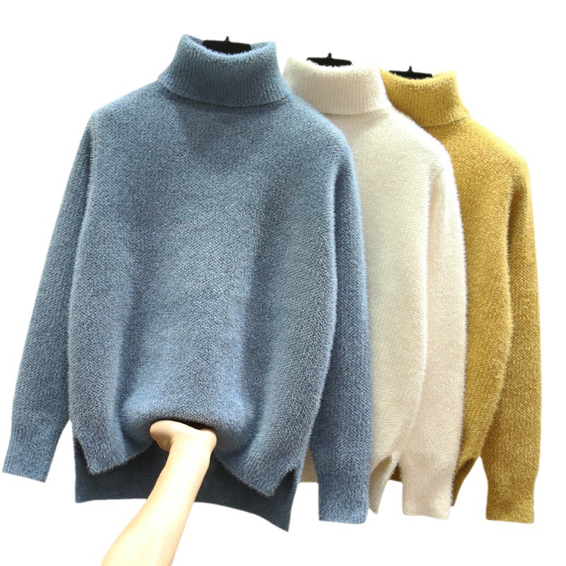 Мягкая восковая однотонная водолазка из имитации норки, Женская осенне-зимняя новая Свободная трикотажная Базовая рубашка из синели в Корейском стиле для похудения