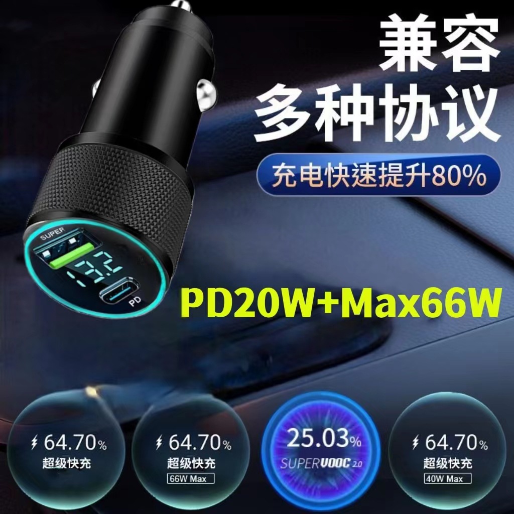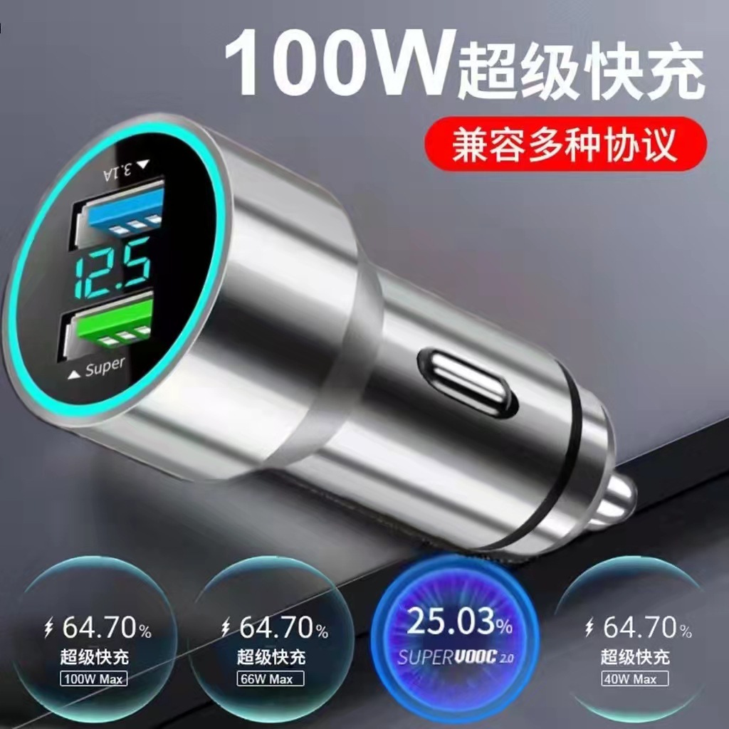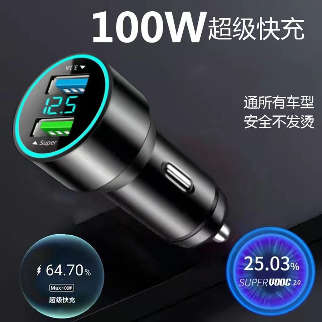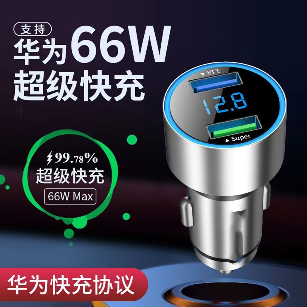 Автомобильное зарядное устройство с цифровым дисплеем подходит для быстрой зарядки Huawei 40woppo65w Super Flash с двойным USB QC3.0 супер быстрой зарядкой автомобильного зарядного устройства