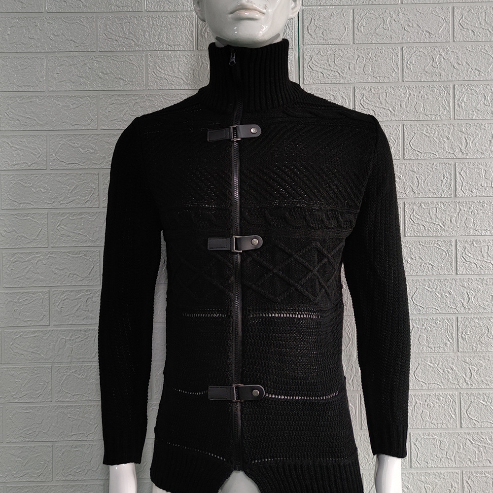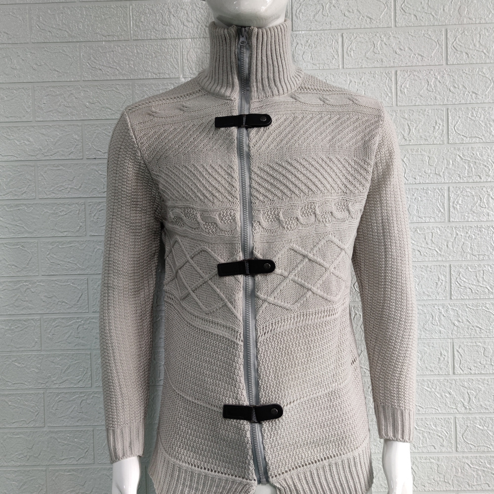 Мужской свитер Amazon для международной торговли, осень-зима 2025, новая утепленная модель с высоким воротом, длинными рукавами, кожаными пуговицами и трикотажной отделкой.
