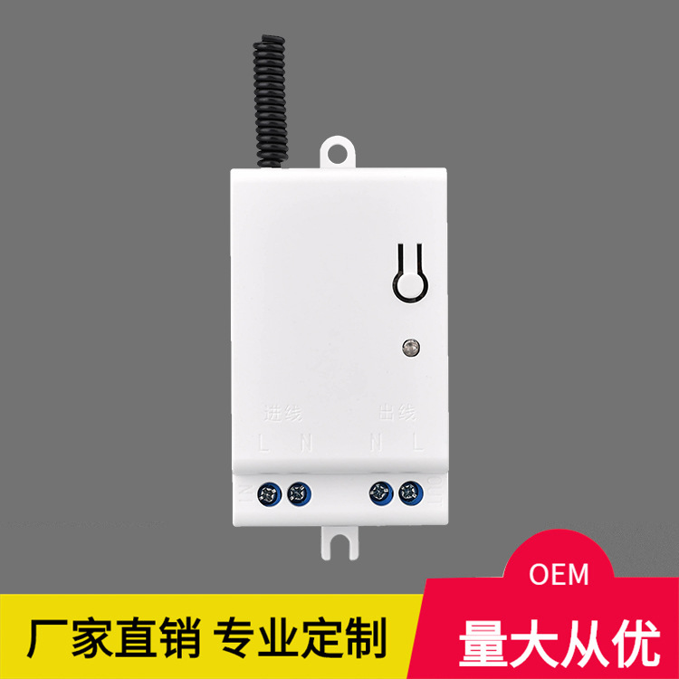 无线接收器外壳,5.0*2P接线端输入输出,轻触按键孔,指示灯孔,尾部天数出口,可安装T73继电器,/上限/大16A,支持射频315M,433M,蓝牙,WIFI等;量大从优,采用阻燃型PC料生产,安全结实