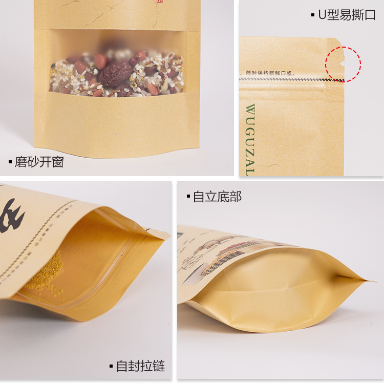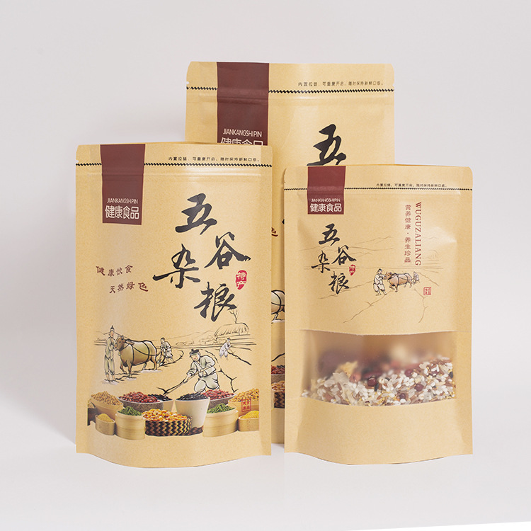 Окно-открытие Kraft бумажный мешок в наличии мешок зерна упаковывая общий мешок зерна упаковывая собственн-запечатывания грубого зерна мешок