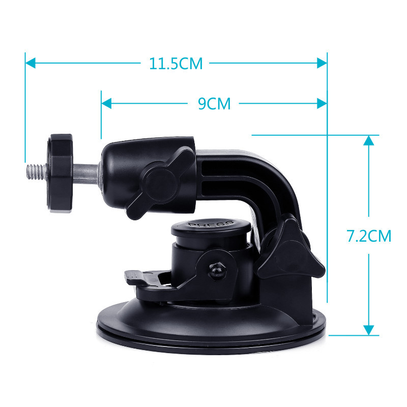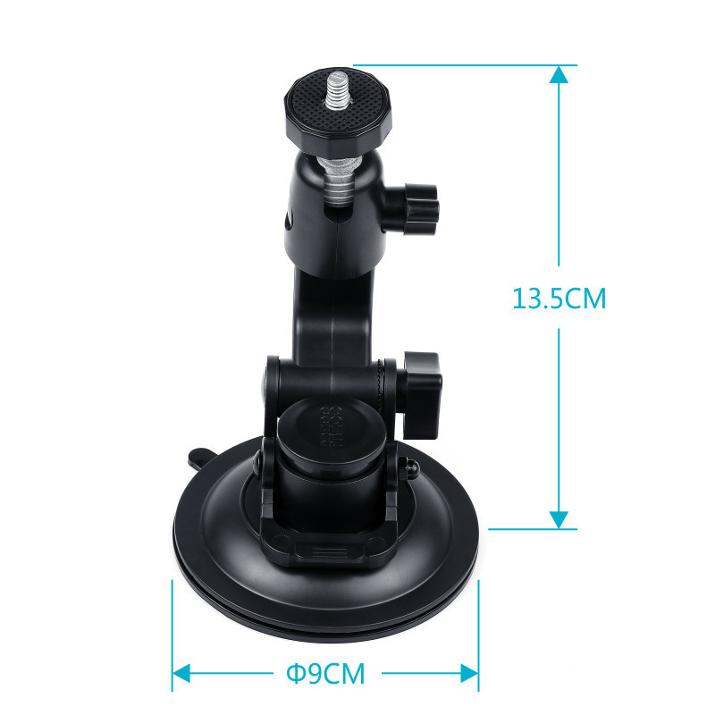 底盘吸盘为黑色软胶,直径为9cm。实测证明,用作Gopro行车记录仪将其固定在车窗,摩托车,玻璃上,能够稳定的吸附在物体表面。