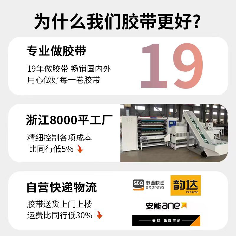 告顾客书:由于我们家胶带卖的比较便宜,近期收到很多同行的差评,我们产品有很高性价比的(自产自销、自己承包发货物流、规模化效应),支持免费拿样,希望货比三家在做选择。买贵了,不满意、不喜欢、不好用,我们支持退货退款。