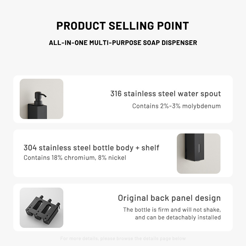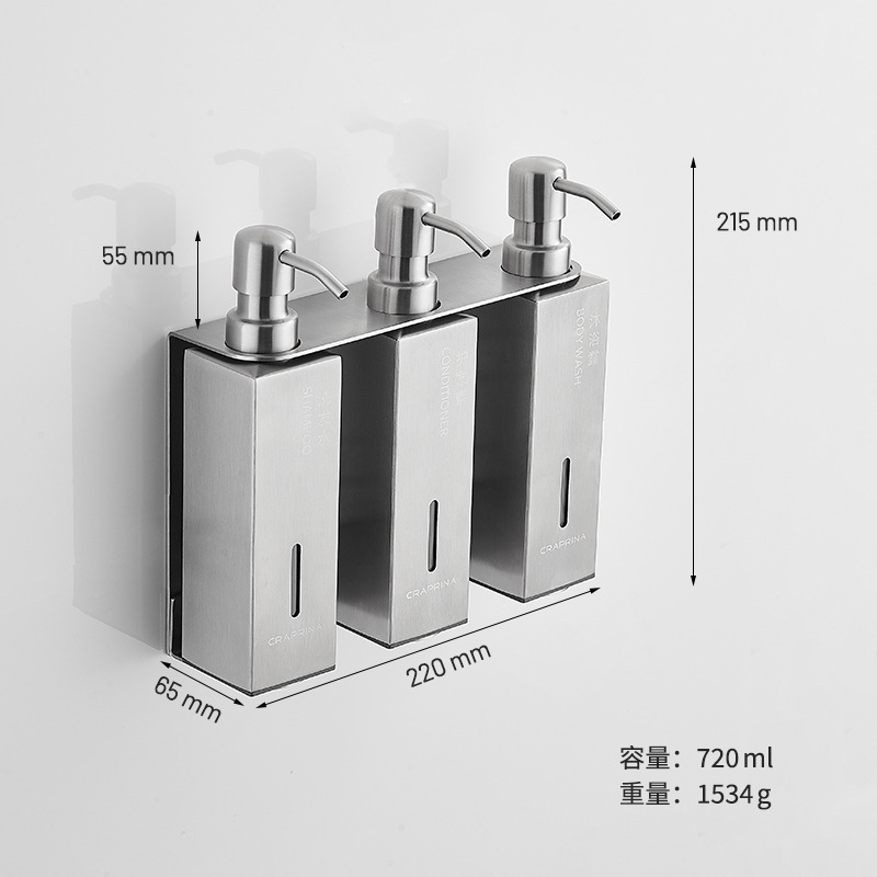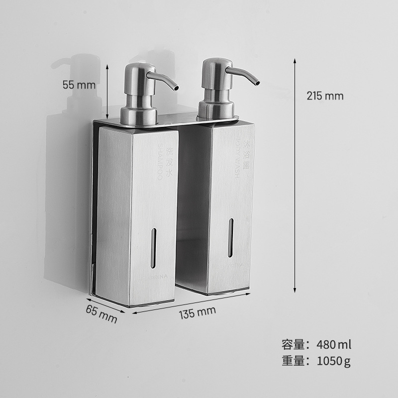 Эксклюзивная трансграничная поставка для ванных комнат отелей. Дозатор для мыла из нержавеющей стали 304. Настенный дозатор для шампуня и геля для душа.