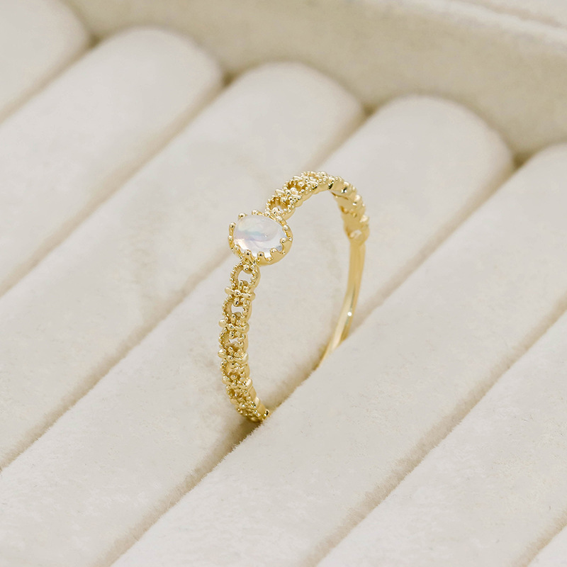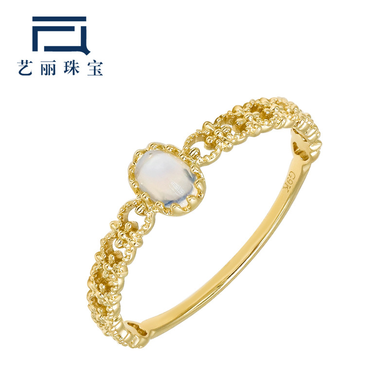 9K золото кружевной стиль полый синий лунный камень кольцо женщин 2020 новый элегантный богиня одиночный продукт