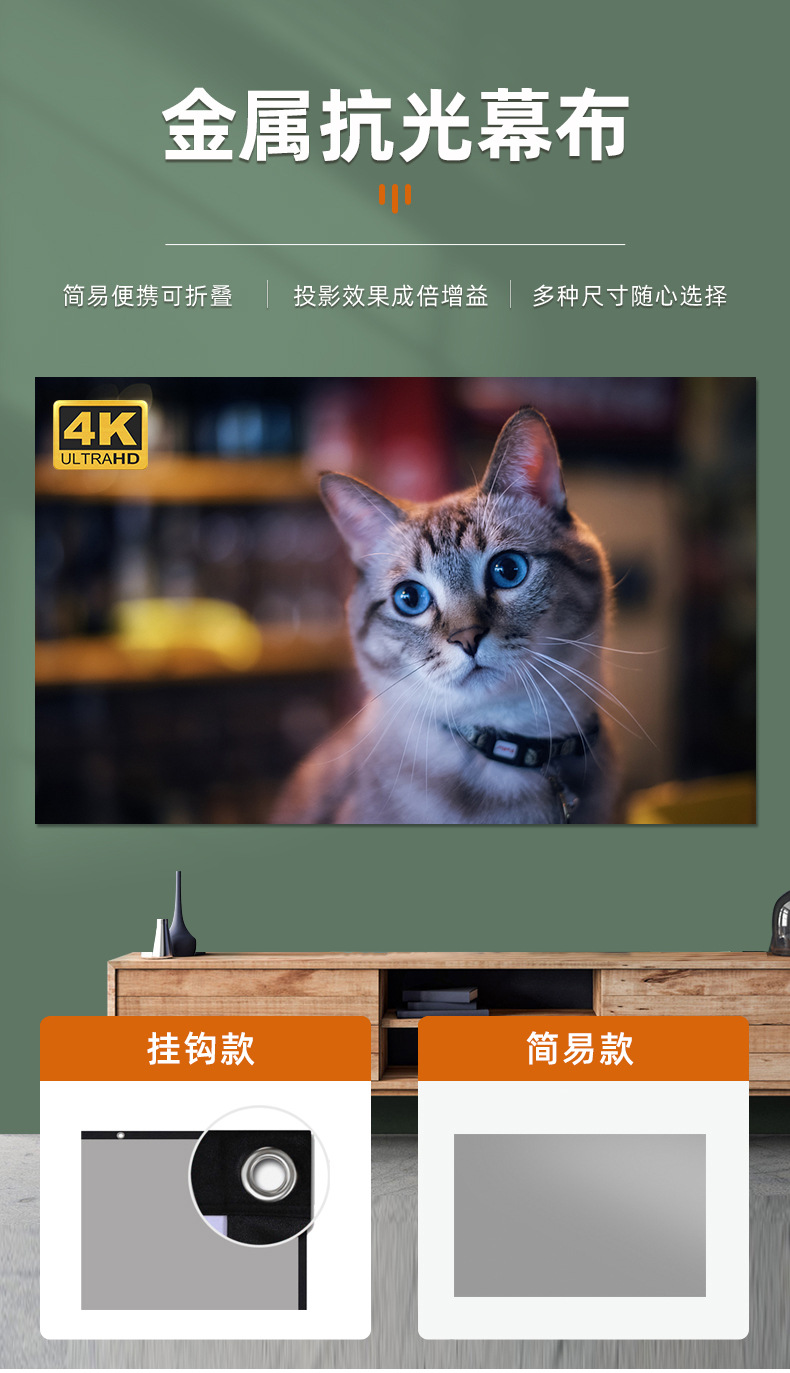 Простой металлический противосветовой занавес для проектора для дома 100 120inch складной 4K проекционный занавес для фильмов высокой четкости