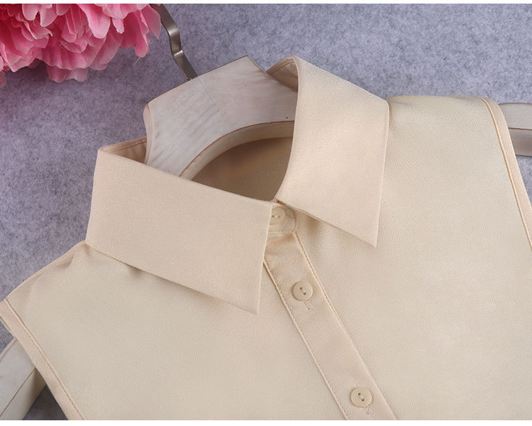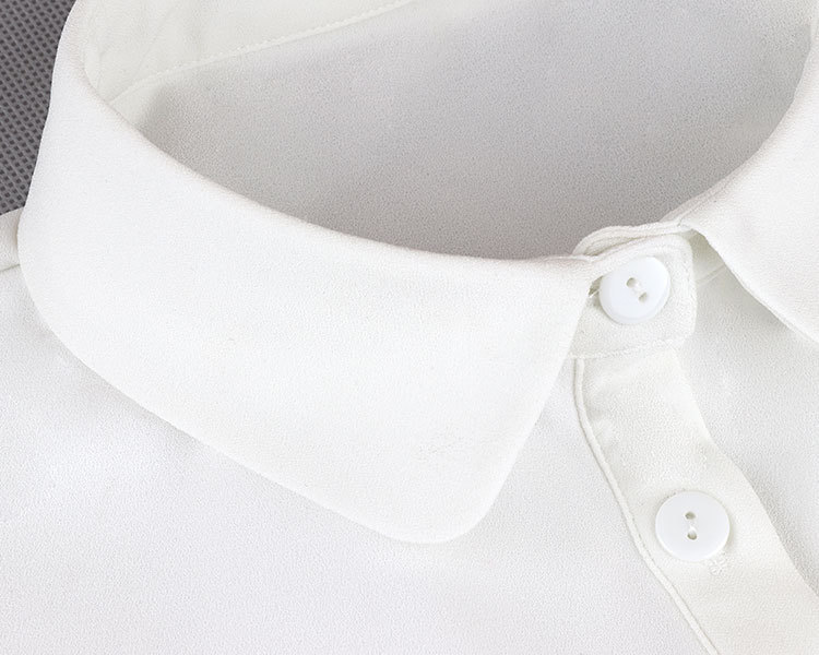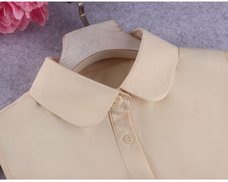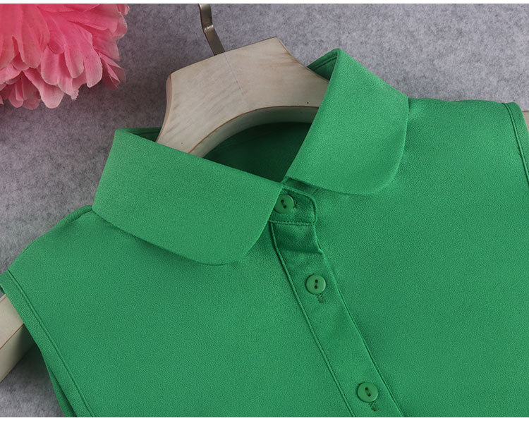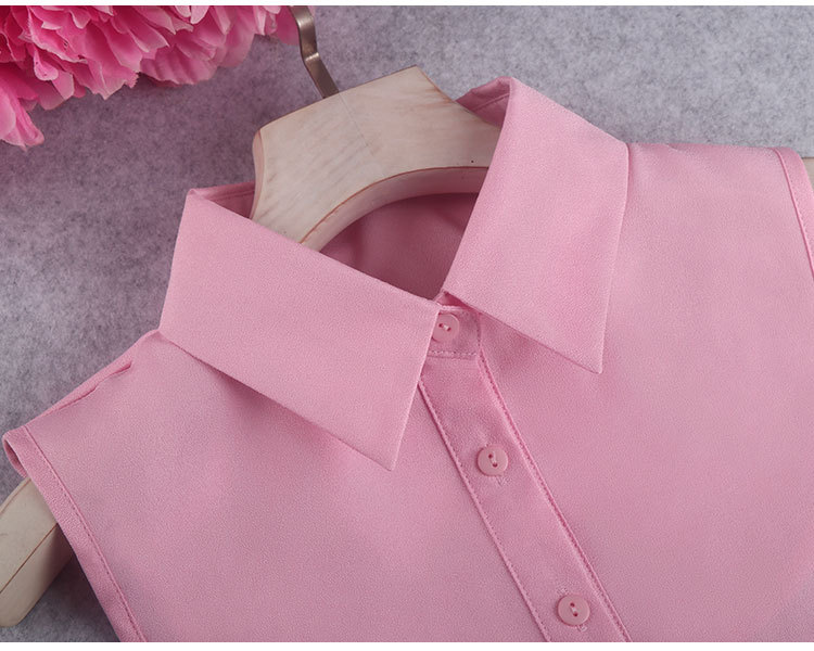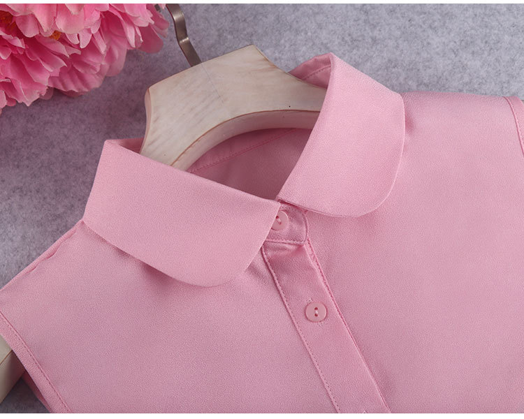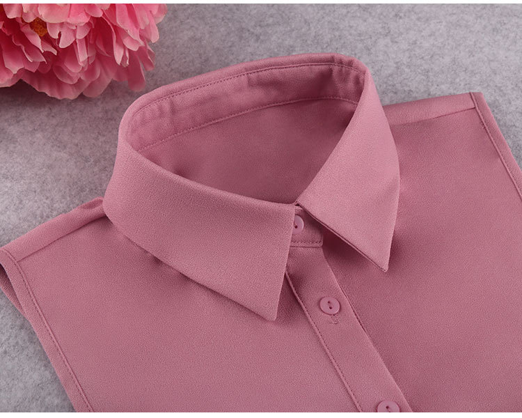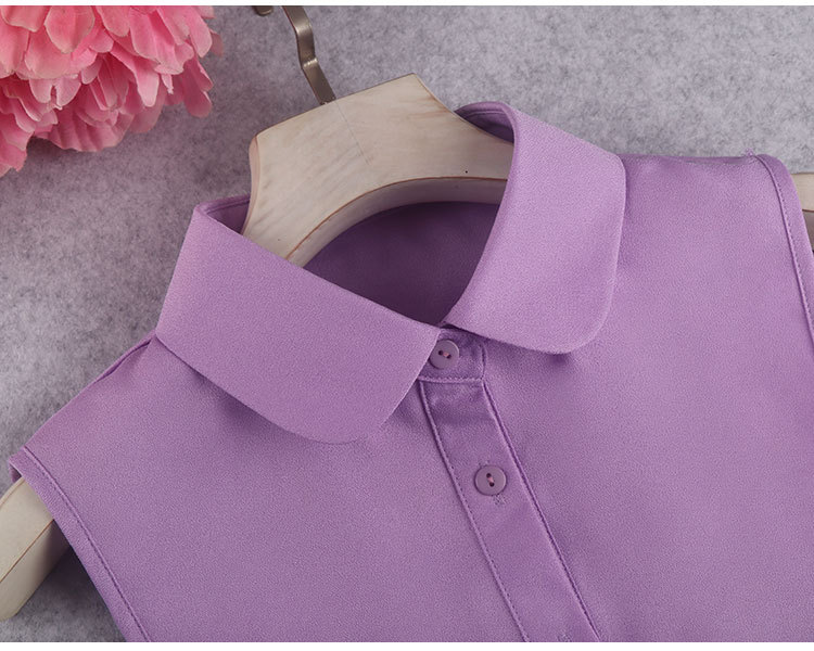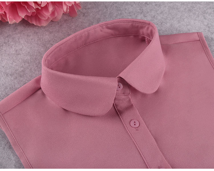 Белый шифон остроконечный воротник; Черный шифон остроконечный воротник; Белый шифон CrewnecK; Черный шифон Круглый вырез; Красное вино шифон указал воротник; Желтый шифон остроконечный воротник; Отверстие Зеленый шифон остроконечный воротник; Розовый шифон точка воротник; Розовый шифон Crewneck; Глубокий пудровый шифоновый наконечник; Глубокий розовый шифон вокруг шеи; Фиолетовый шифон остроконечный воротник; Фиолетовый шифон Круглый вырез; Зеленый шифон остроконечный воротник; Зеленый шифон Crewneck; Абрикосовый шифоновый заостренный воротник; Абрикосовый шифон с круглым вырезом; Коричневый шифоновый остроконечный воротник; Коричневый шифон Crewneck; Синий шифон указал воротник