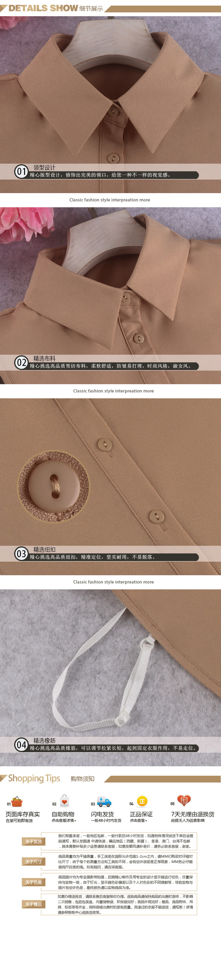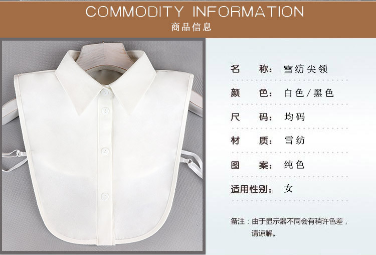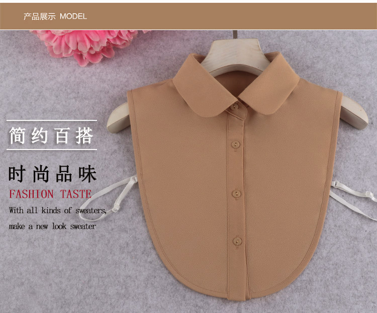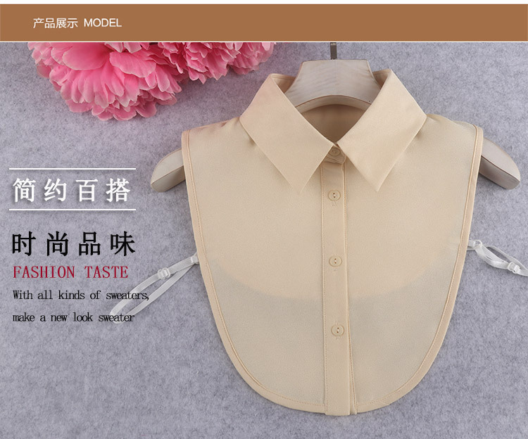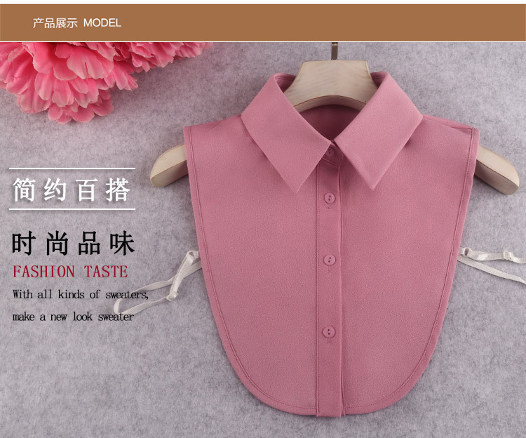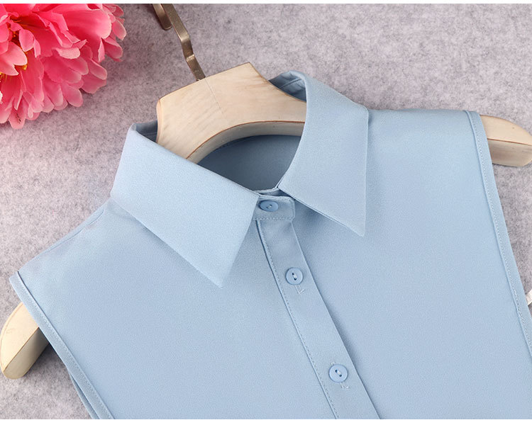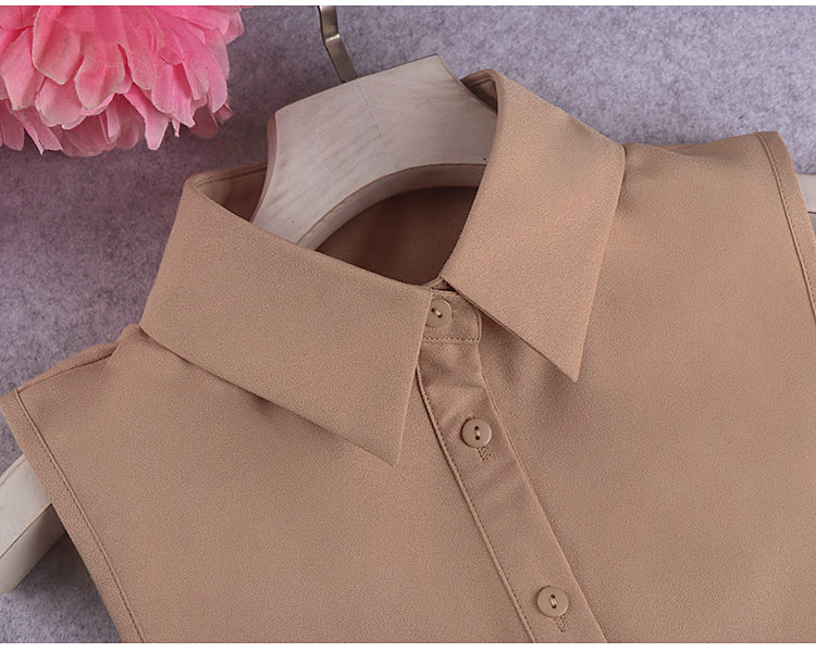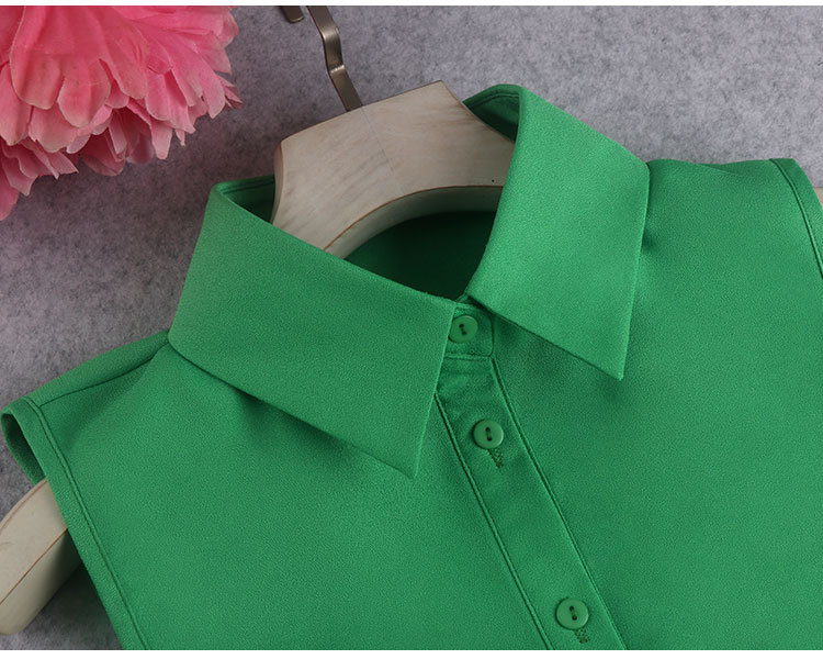 Белый шифон остроконечный воротник; Черный шифон остроконечный воротник; Белый шифон CrewnecK; Черный шифон Круглый вырез; Красное вино шифон указал воротник; Желтый шифон остроконечный воротник; Отверстие Зеленый шифон остроконечный воротник; Розовый шифон точка воротник; Розовый шифон Crewneck; Глубокий пудровый шифоновый наконечник; Глубокий розовый шифон вокруг шеи; Фиолетовый шифон остроконечный воротник; Фиолетовый шифон Круглый вырез; Зеленый шифон остроконечный воротник; Зеленый шифон Crewneck; Абрикосовый шифоновый заостренный воротник; Абрикосовый шифон с круглым вырезом; Коричневый шифоновый остроконечный воротник; Коричневый шифон Crewneck; Синий шифон указал воротник