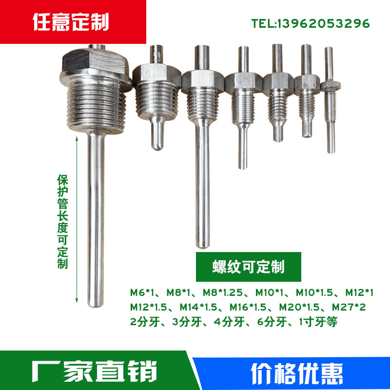 50 мм * 1,5 м в длину; Длина резьбы и зонда может быть изменена