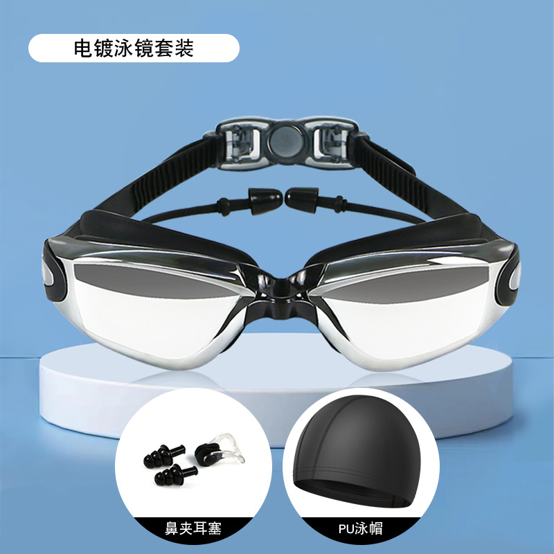 Очки для плавания с большой рамой HD противотуманные водонепроницаемые очки для плавания с большим полем зрения для близорукости мужские и женские гальванические очки для плавания производители оптом