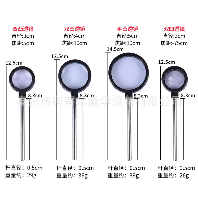 手持双凸透镜 直径3cm,焦距5cm