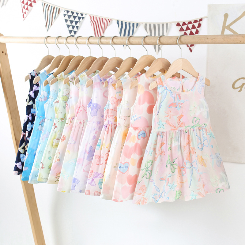 Девушки летние платья 2025 новый подтяжка юбка детка шелковая юбка детское цветочная юбка юбка