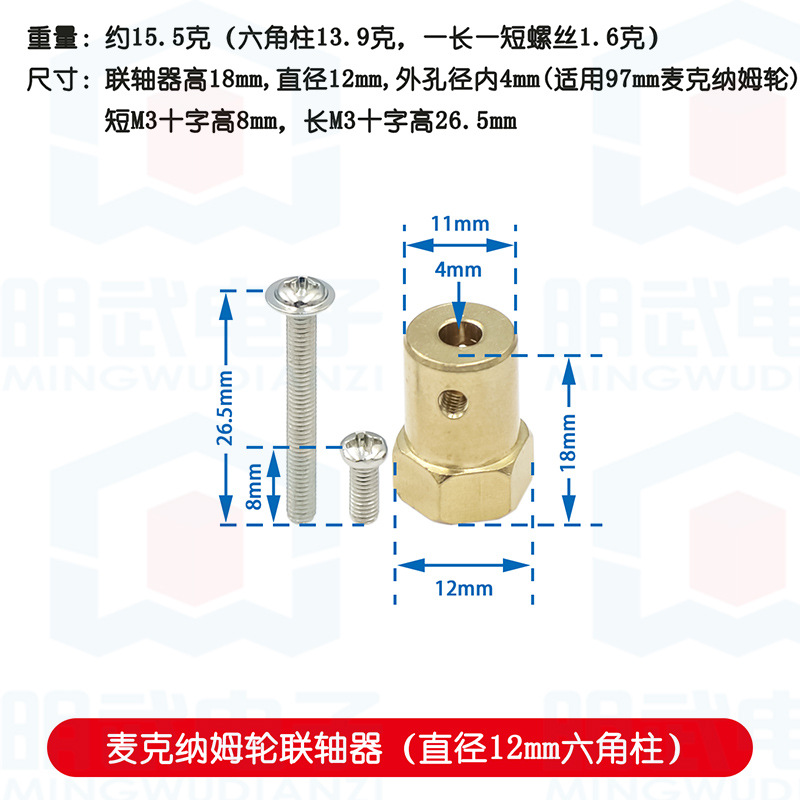 黑轮:直径97mm,厚度48mm。联轴器直径12mm,内孔4mm。