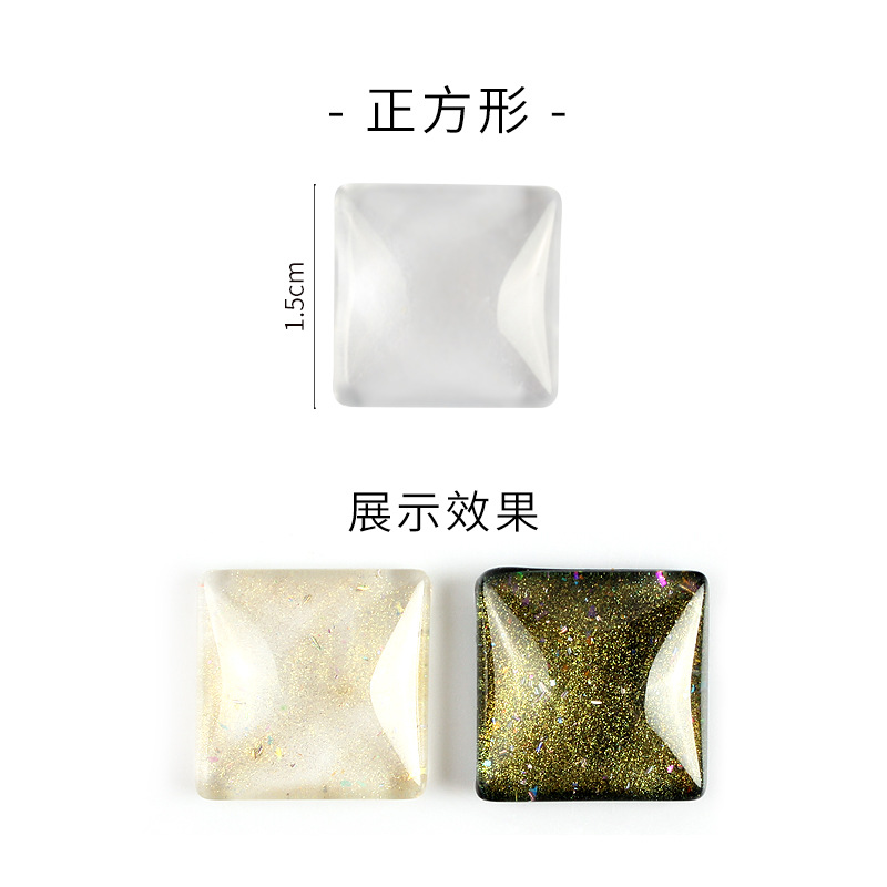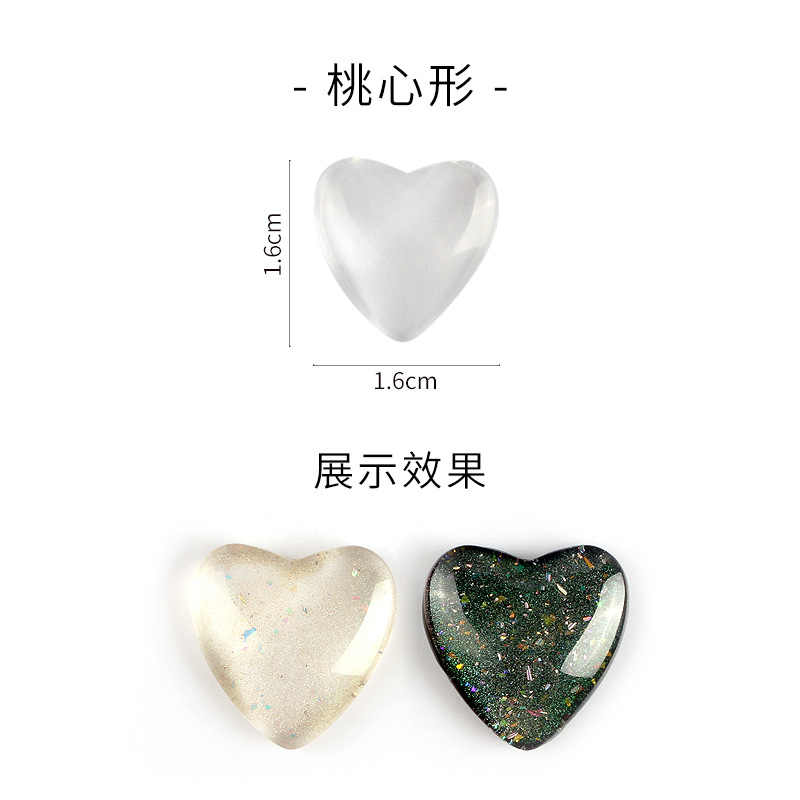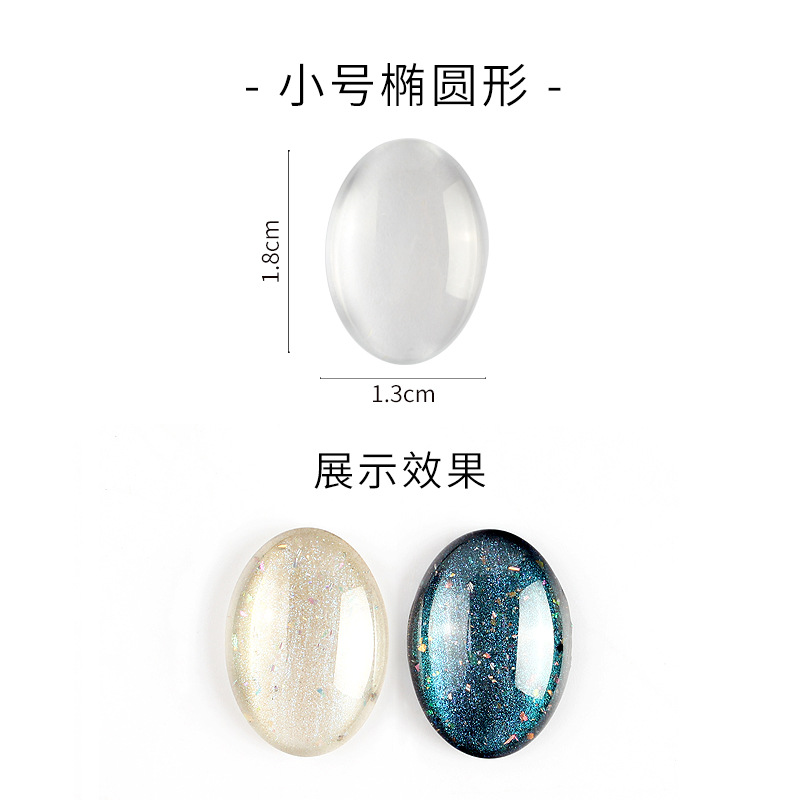 Овал 1,3*1,8 см; Форма капли воды 1,3*1,8 см; Форма персикового сердца 1,6*1,6; Квадрат 1,5*1,5 см; Круглый 1,5*1,5 см; Полукруглый 14 мм; Форма сливы 1,8*1,8 см; Маленький круглый 8 мм; Маленький круглый 12 мм.; Маленький круглый 1,4*1,4 см; Полусферический 15 мм