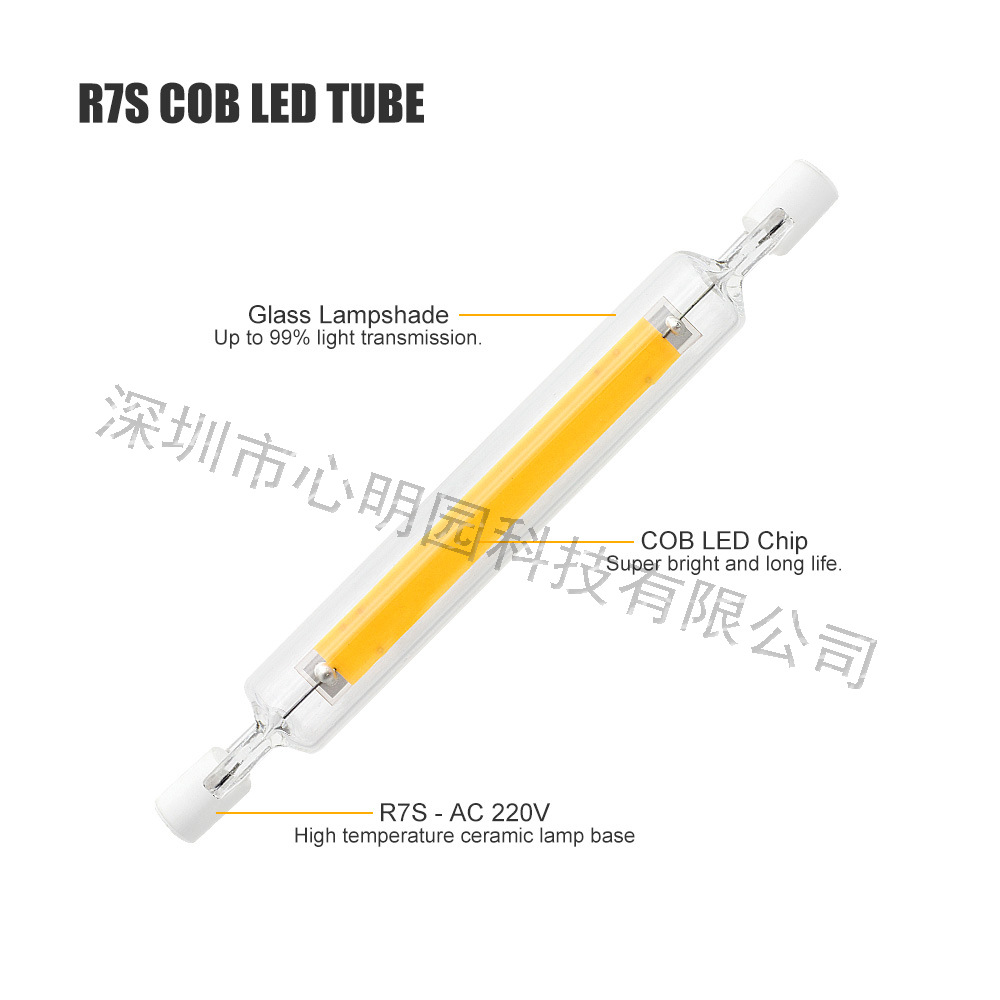 Трансграничная горячая Распродажа R7S Светодиодный горизонтальный штекер R7S Светодиодный двусторонний свет COB Sapphire 78 мм118 мм с регулируемой яркостью