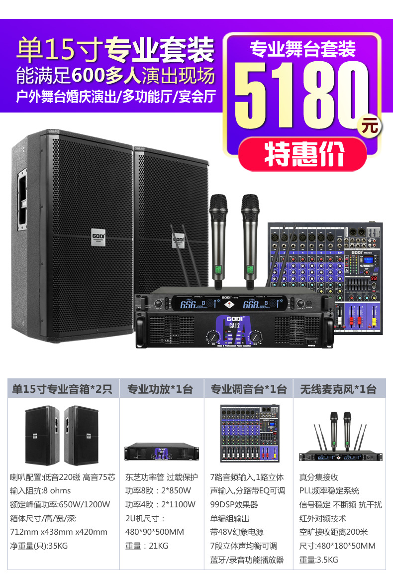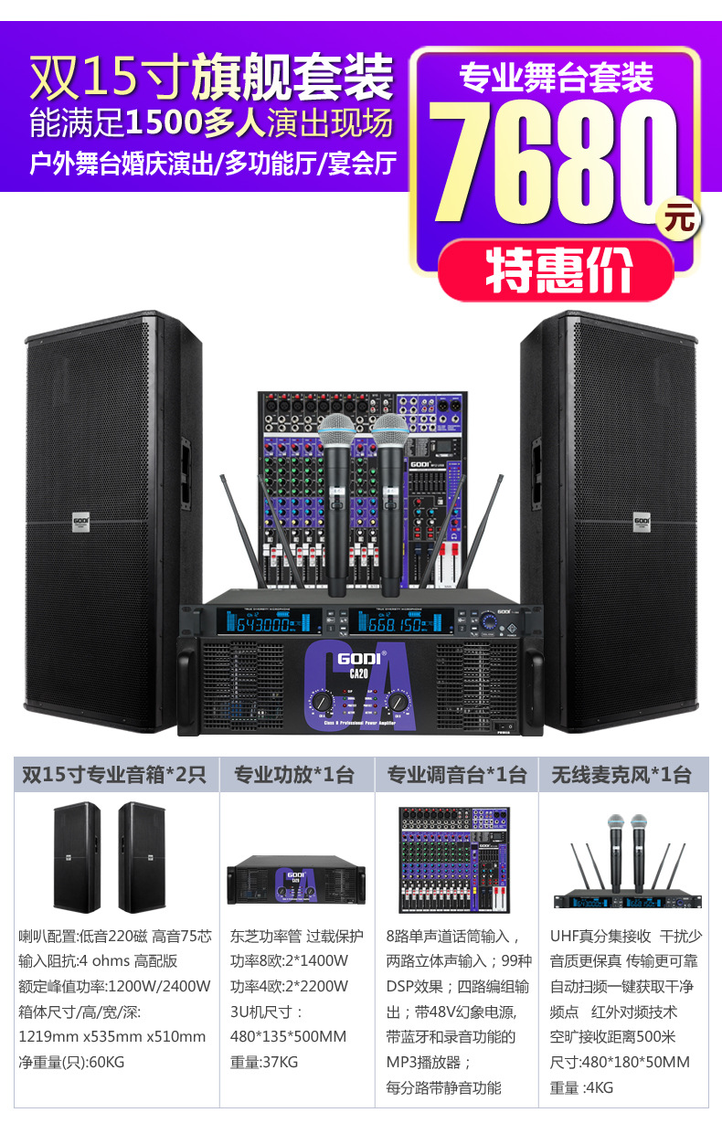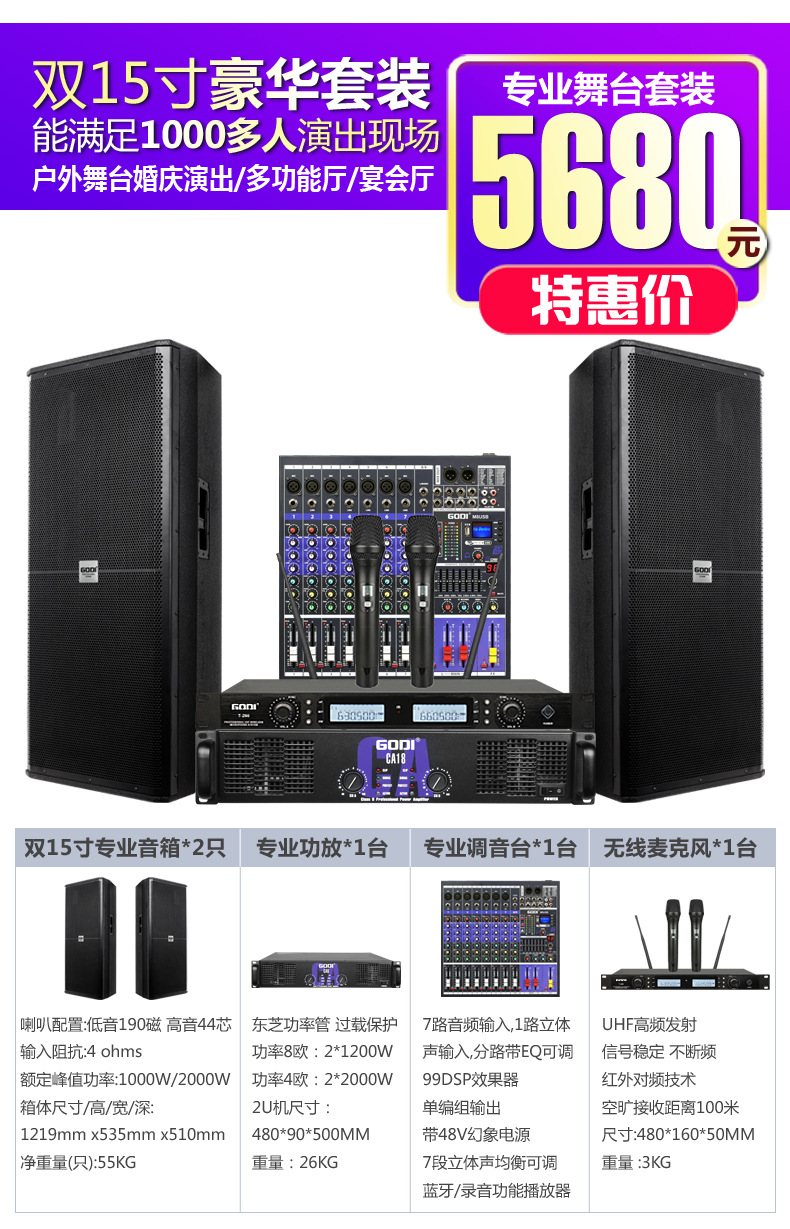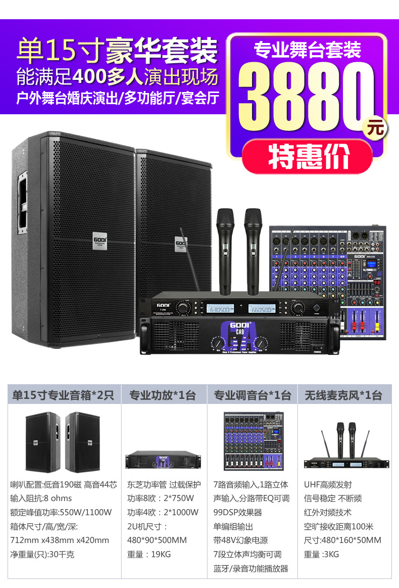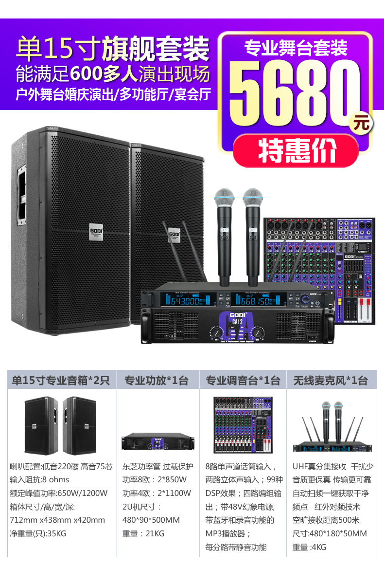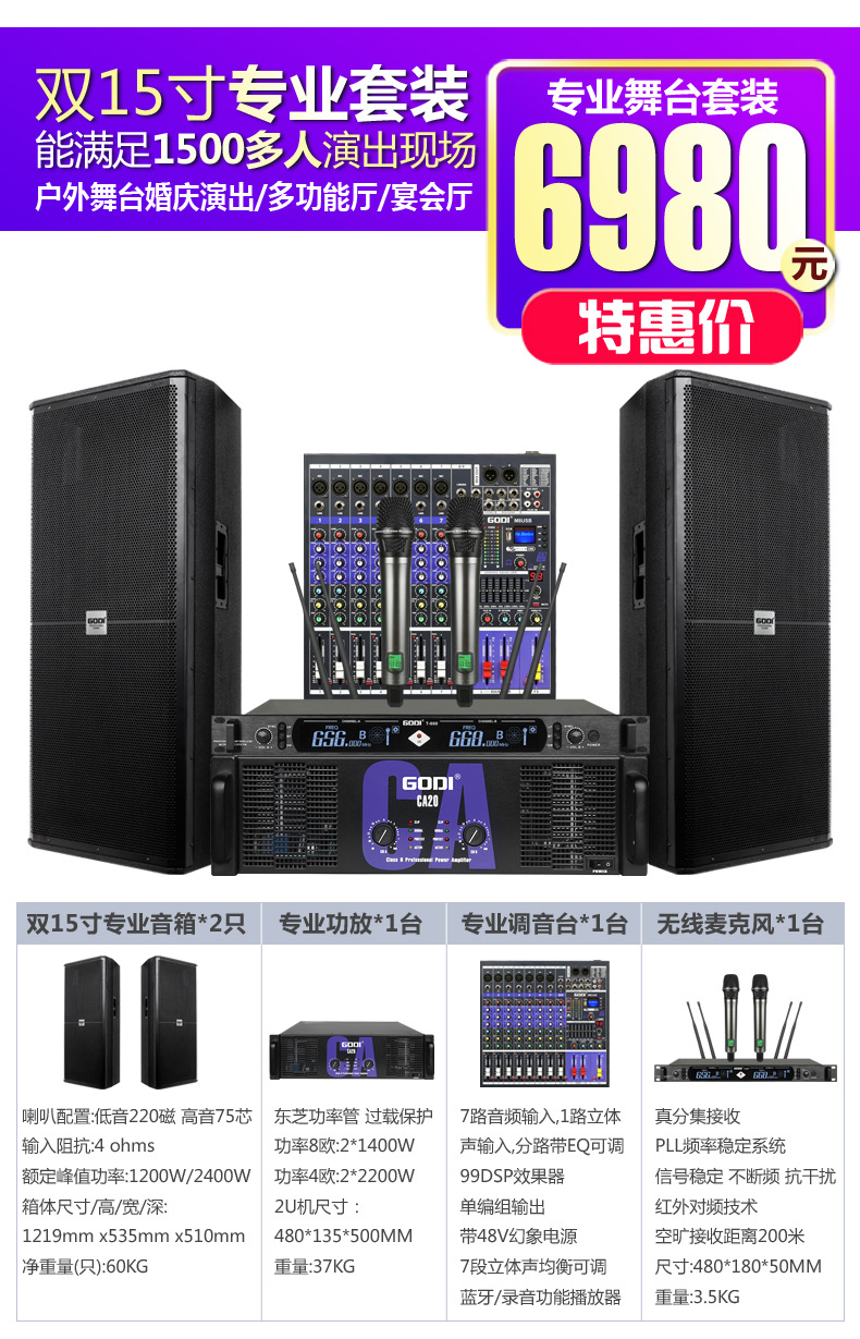 GODI Профессиональный динамик одиночный 15-дюймовый открытый выступления Свадебная встреча KTV бар мощный сценический аудио костюм