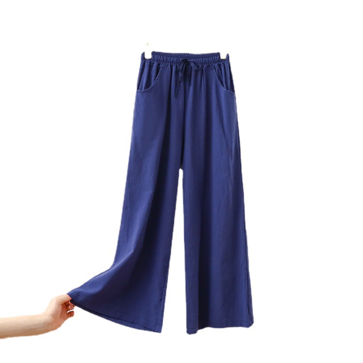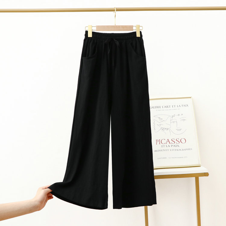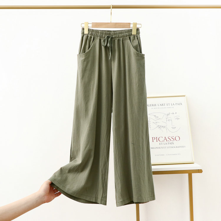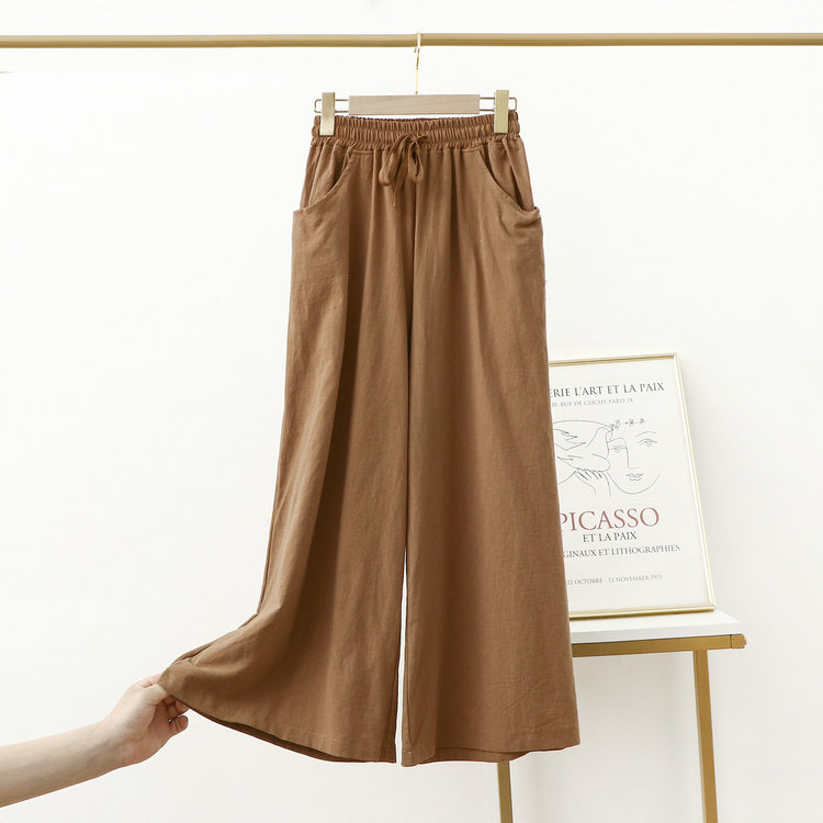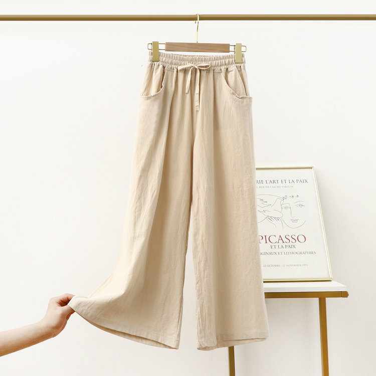Хлопковые льняные широкие брюки с карманами, женские летние тонкие свободные льняные повседневные Прямые брюки до щиколотки с высокой талией для дозирования больших размеров