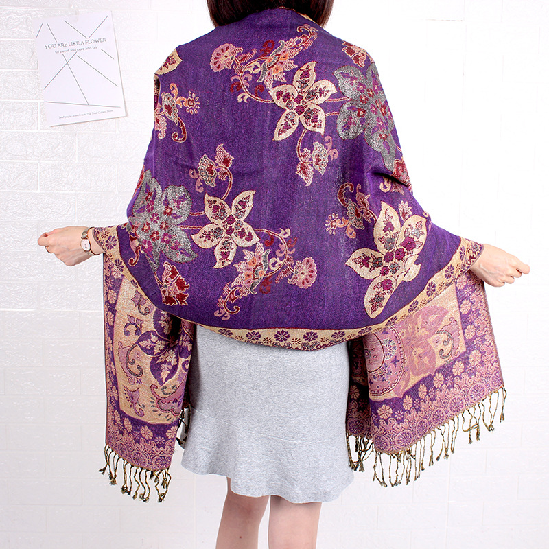 Этнический стиль шаль Лицзян Тибет Цинхай Туризм Ретро кисточкой Cheongsam шарф женский Zijin цветок кешью длинный шарф