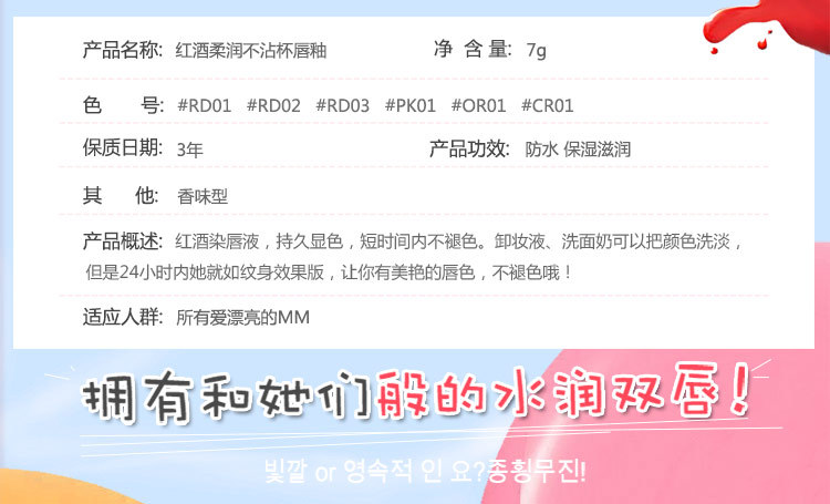 批发染唇液 红酒染唇液红酒瓶唇彩 染唇液不掉色咬唇染唇水 | |