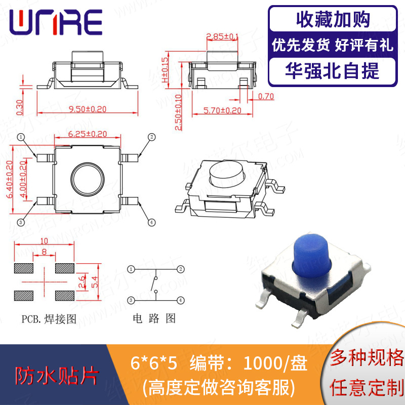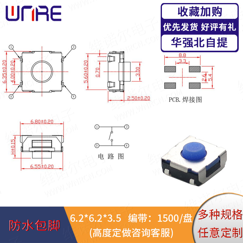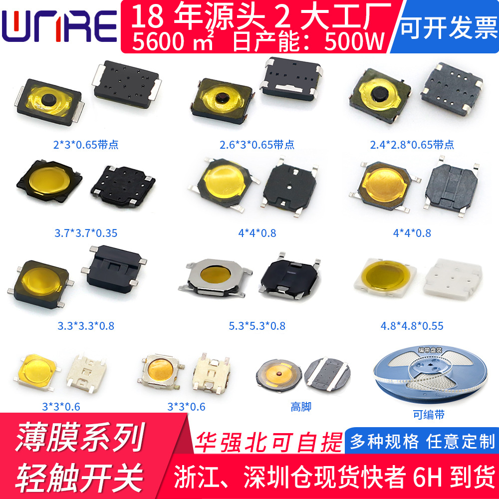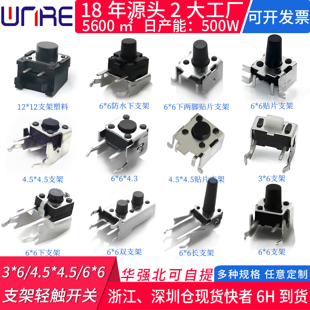 6*6: 贴片系列、插脚系列、防水贴片系列、防水插脚系列、边两脚、边三脚、6*6带灯