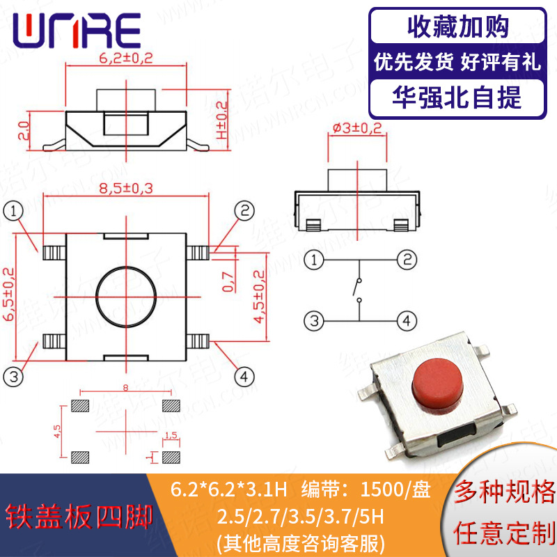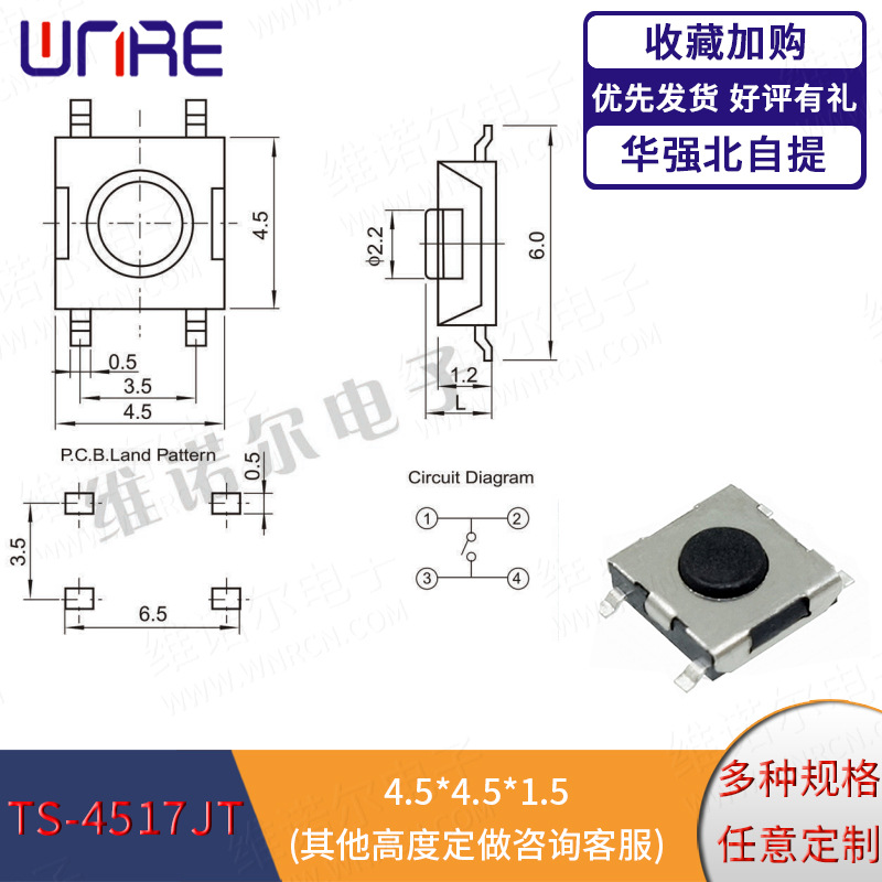 4.5*4.5: 贴片系列、插脚系列、边两脚系列、边三脚系列
