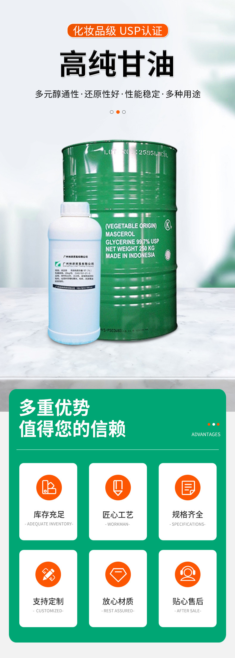 1.0kg упаковок глицерина Chunjin, глицерола, промышленного, пищевого, фармацевтического и медицинского класса, рафинированного