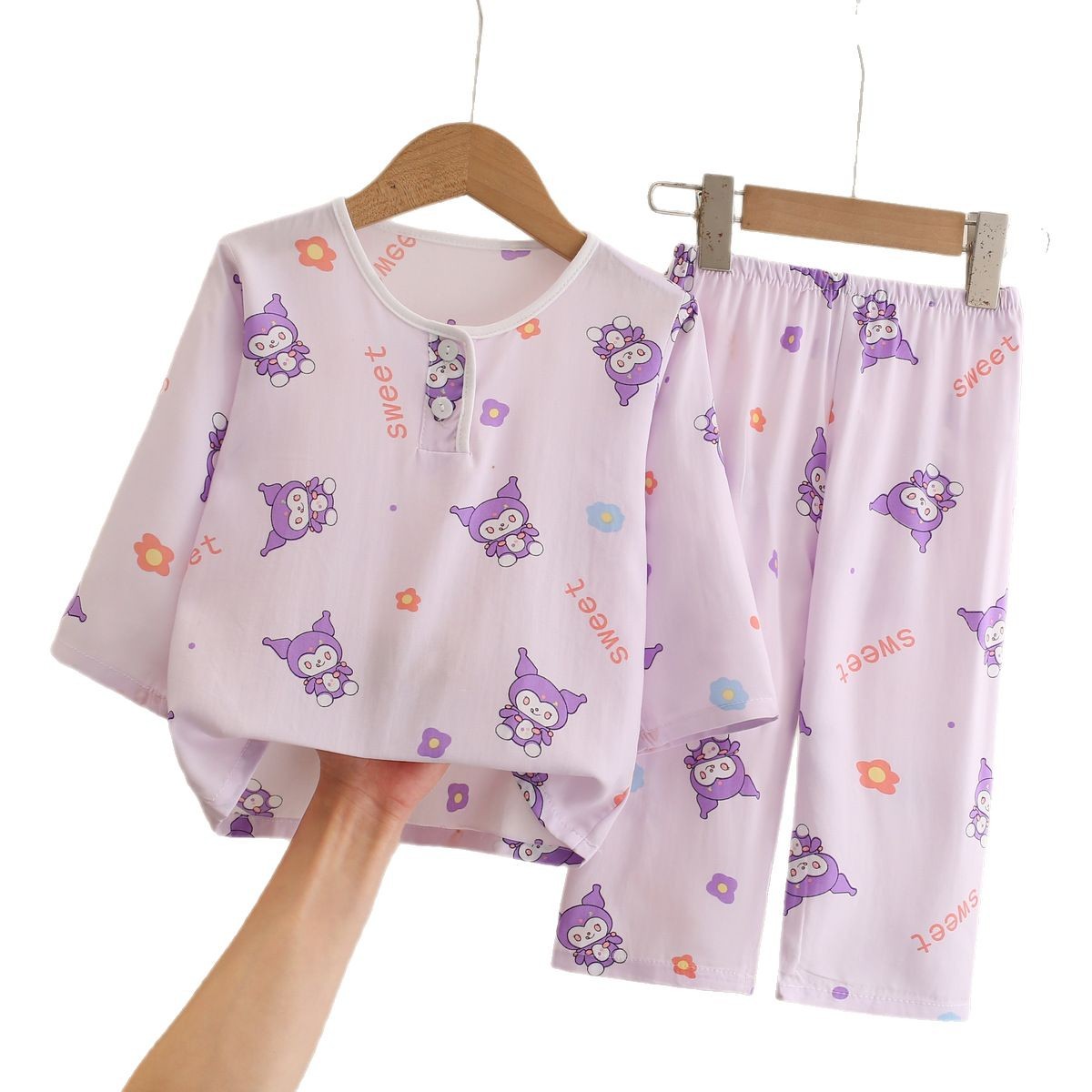 Детские брюки с длинным рукавом Пижамы оптом Хлопковый шелк Спящие мальчики и девочки Кондиционер Домашняя одежда Костюм Одежда Летний хлопковый шелк