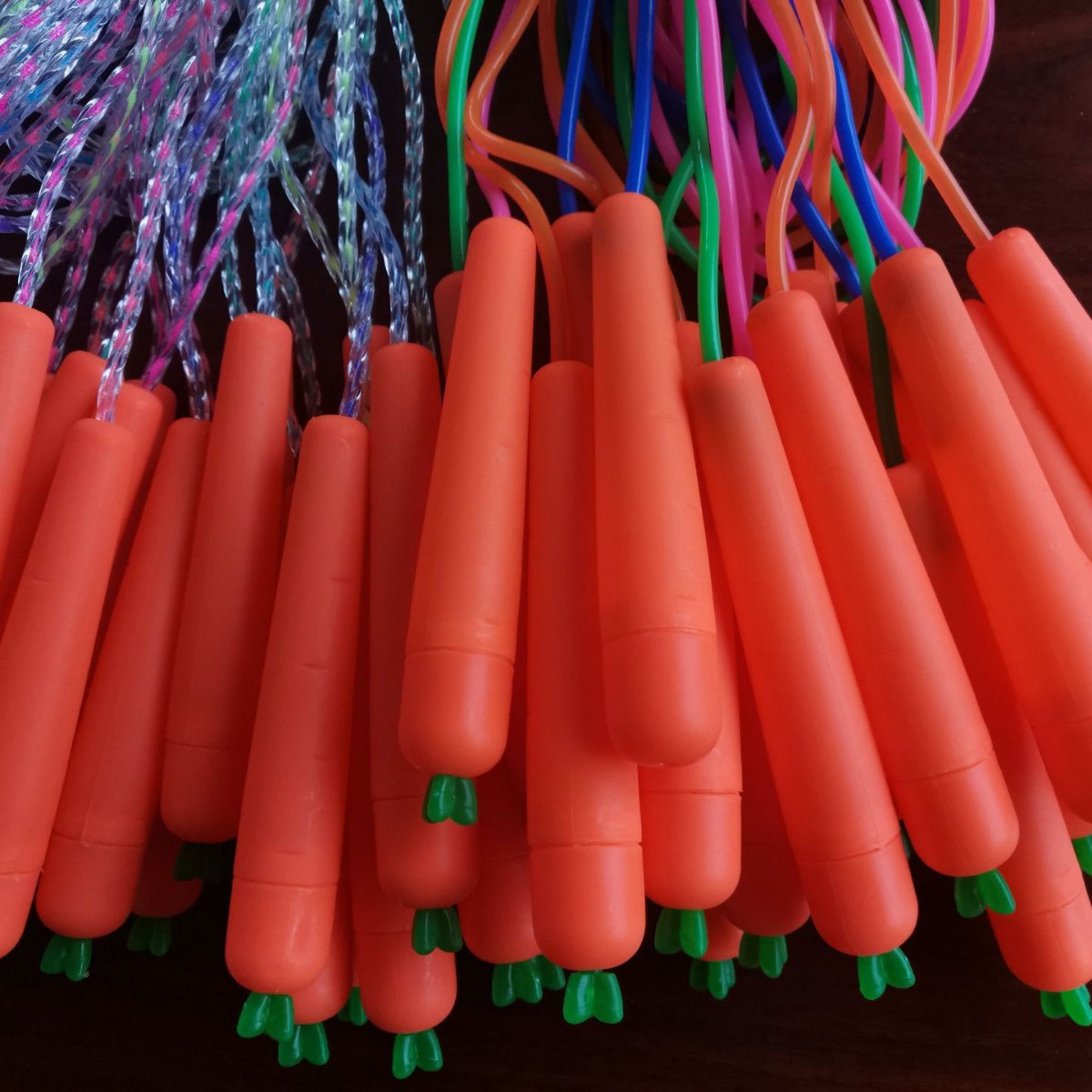 本厂生产各种规格品种型号的塑料跳绳,颜色鲜艳光亮柔软防冻,品种多价格优惠欢迎采购。