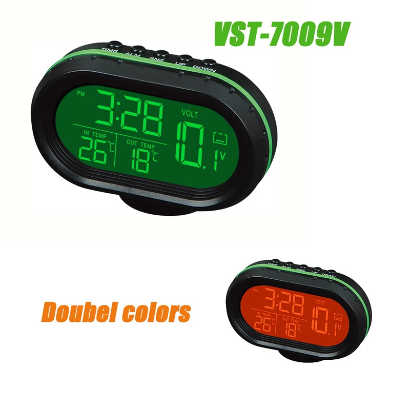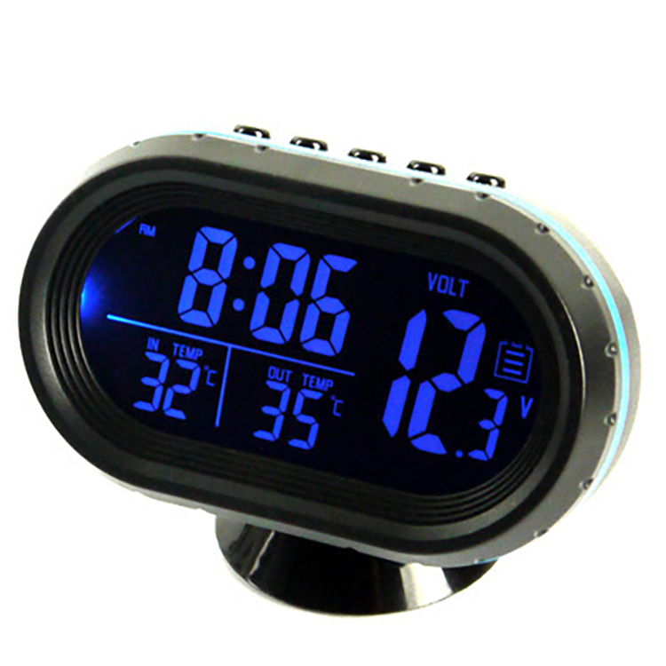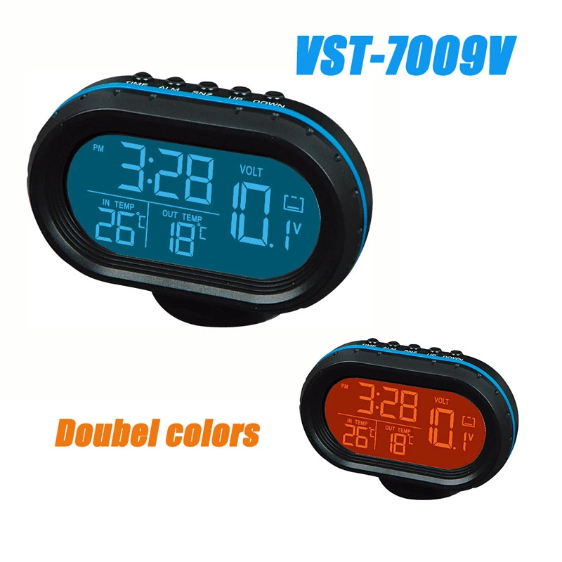 汽车时钟 车用内外温度表 车载电压表 电子表 一机双色蓝橙调换