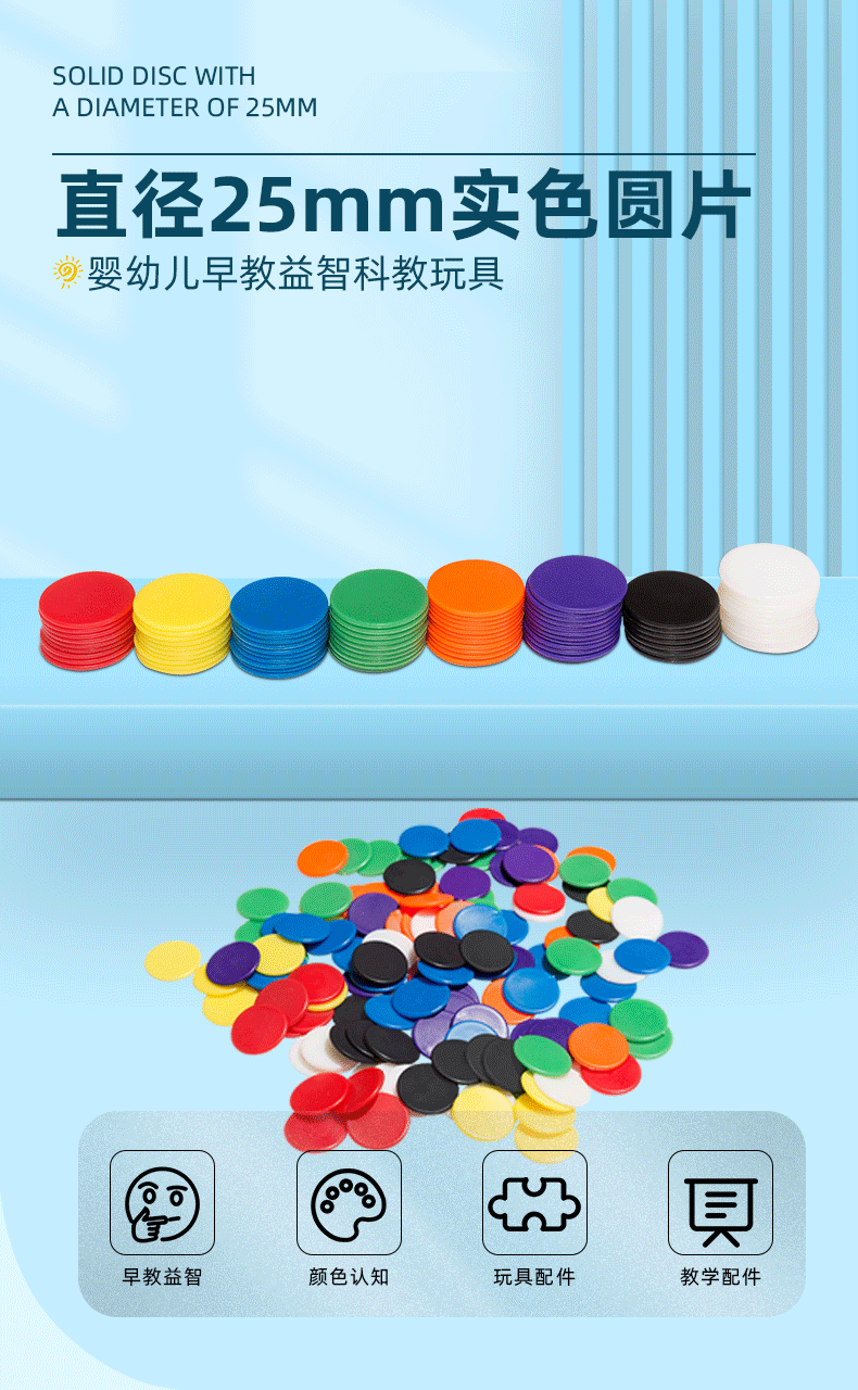 Производители поставляют твердые маленькие круглые кусочки цветных пластиковых фишек раннего образования 25X1.7mm игровые очки монеты