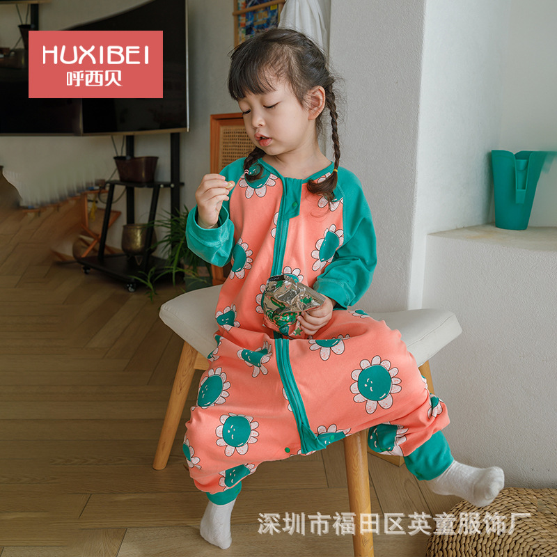 Спальный мешок Huxibei Leg на весну и лето, детский однослойный ударопрочный хлопковый детский спальный костюм, домашний костюм, детский спальный мешок