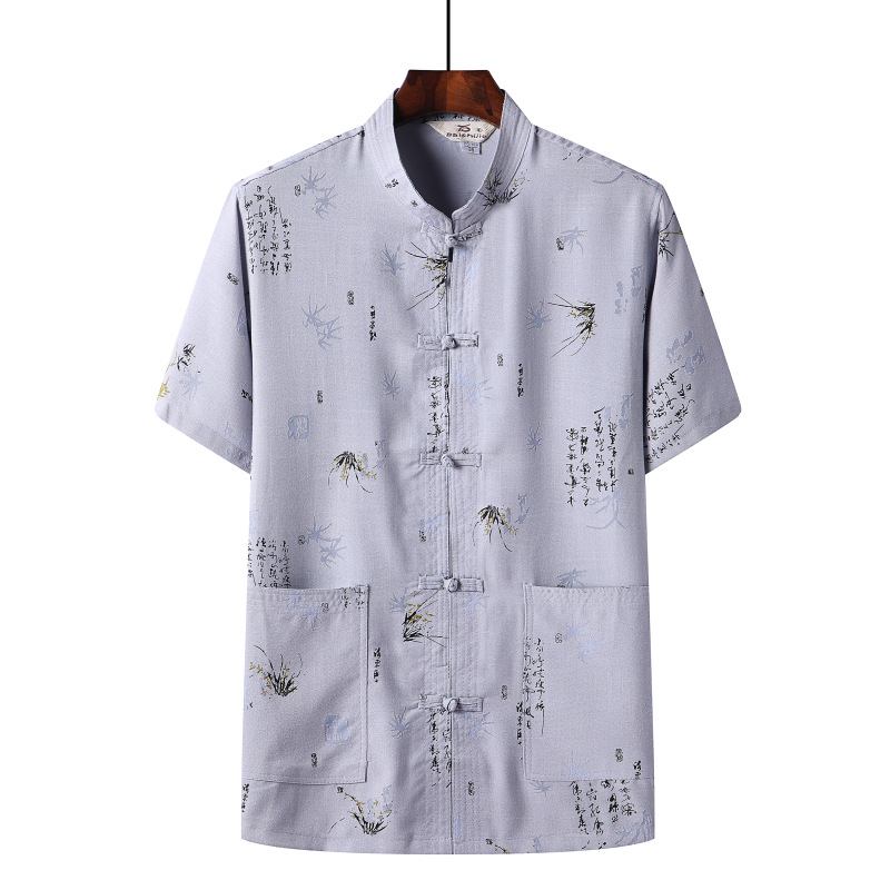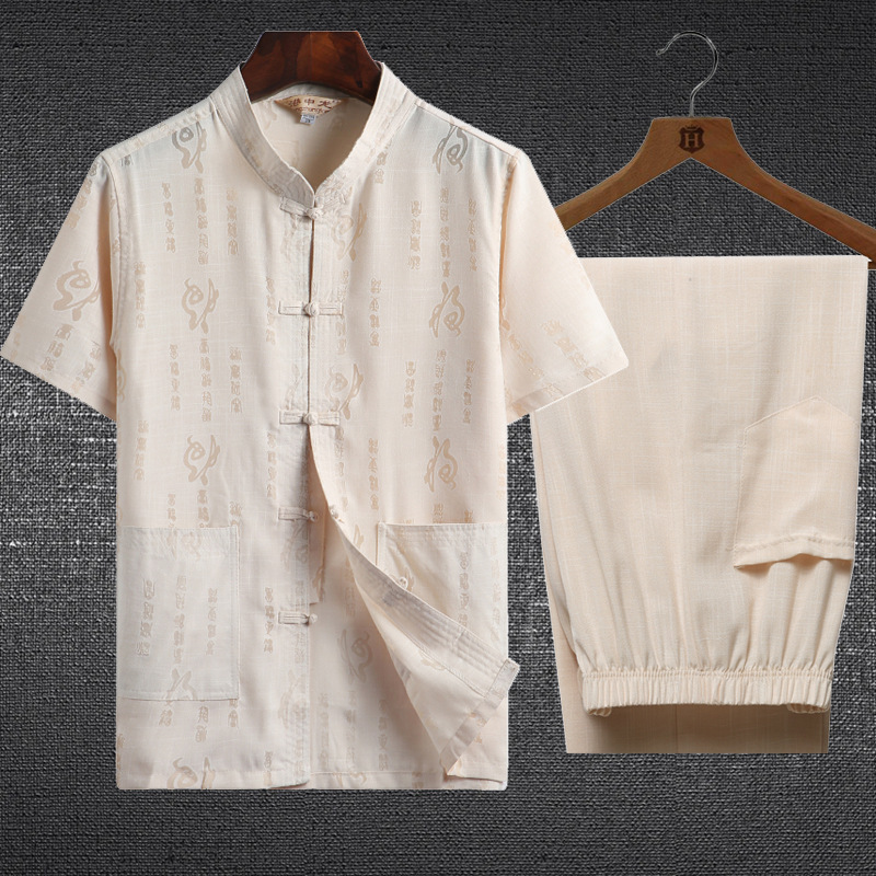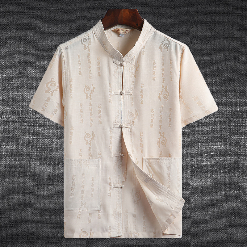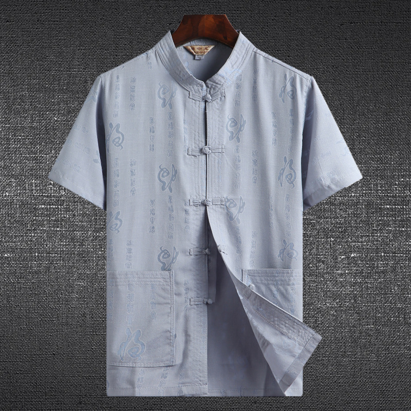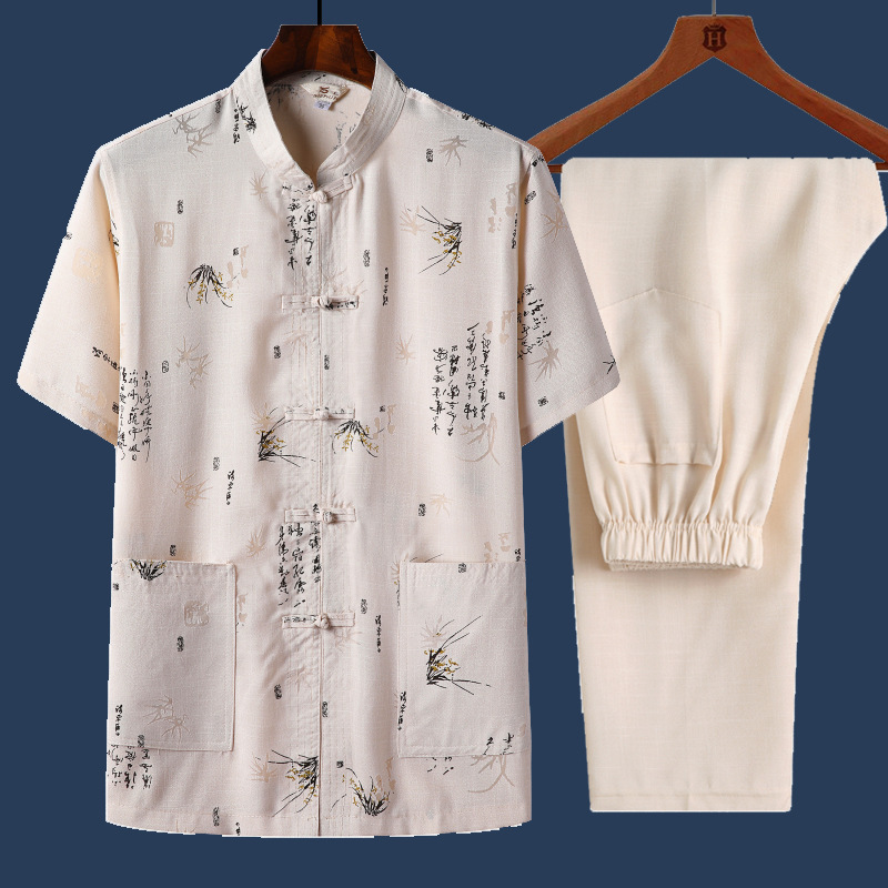 Мужской костюм Jusper в китайском стиле, льняной костюм Тан для среднего и пожилого возраста, летняя рубашка из хлопка и льна ханьфу в этническом китайском стиле с короткими рукавами
