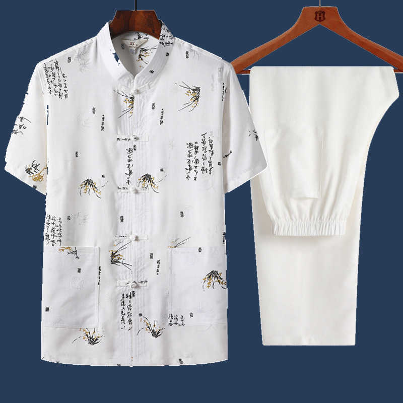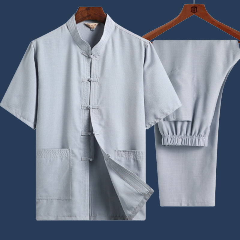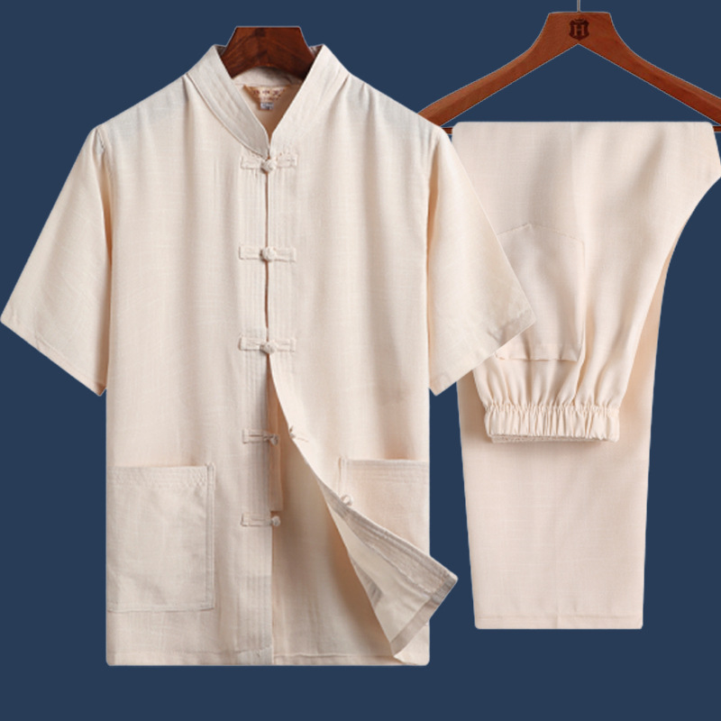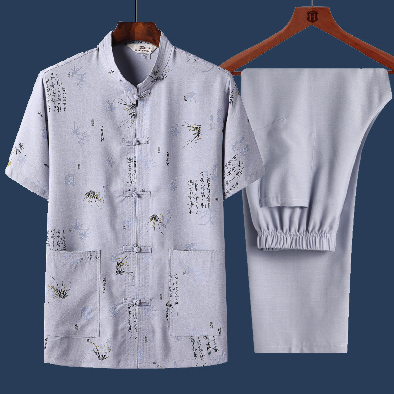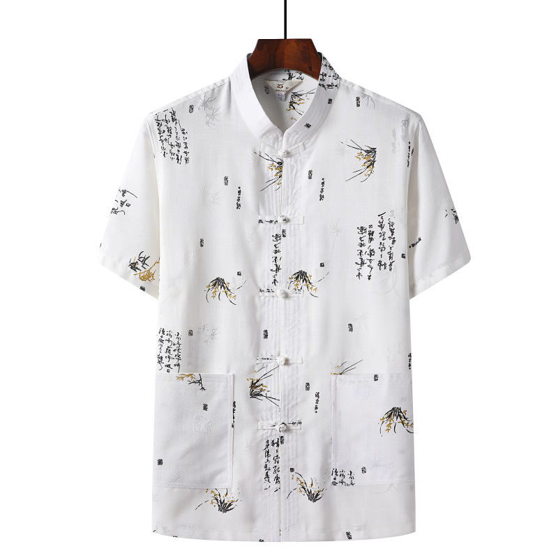 Мужской костюм Jusper в китайском стиле, льняной костюм Тан для среднего и пожилого возраста, летняя рубашка из хлопка и льна ханьфу в этническом китайском стиле с короткими рукавами