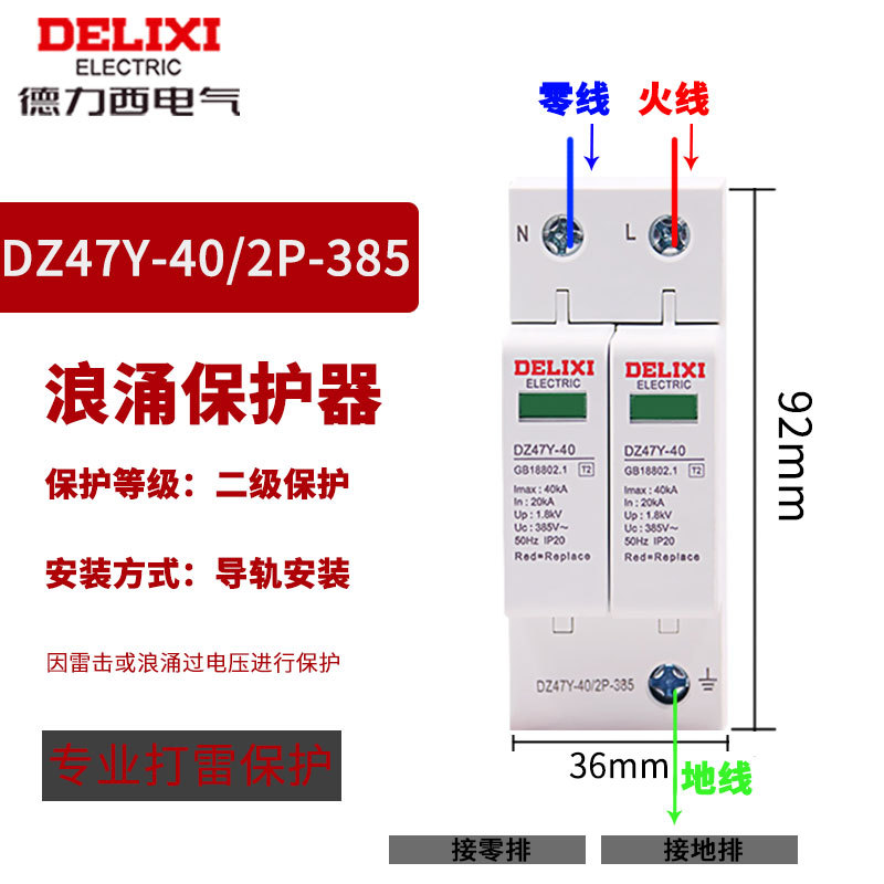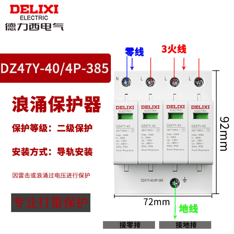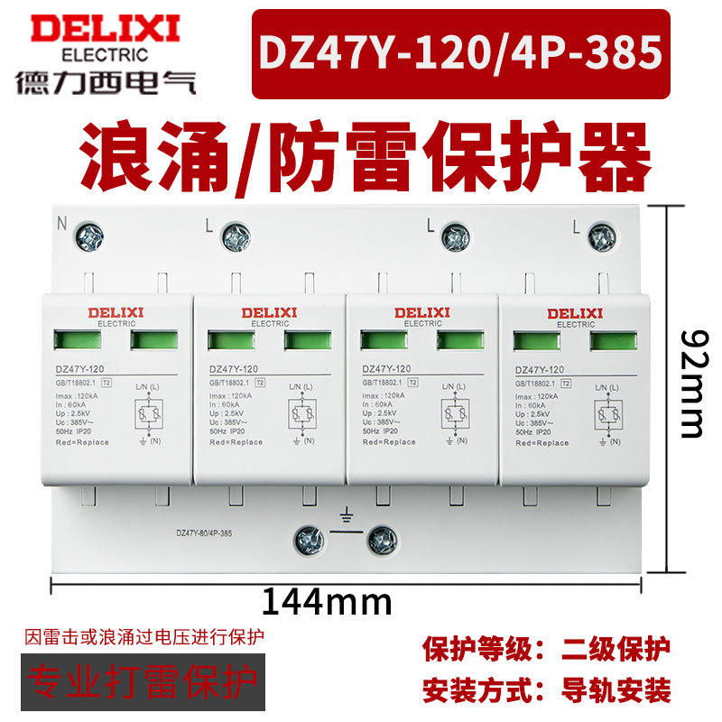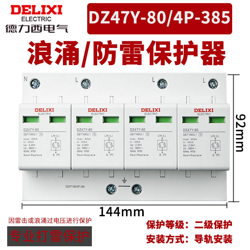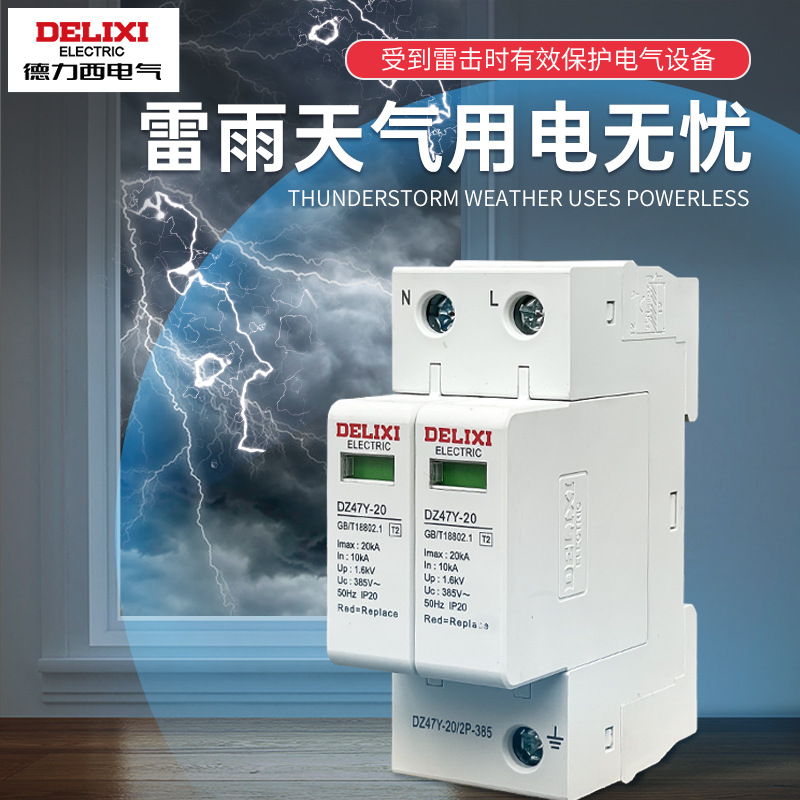 Удалитель перенапряжения Delixi DZ47Y-10KV бытовой молниеотвод 220V 380V перенапряжение 4P выключатель молниезащиты 2p