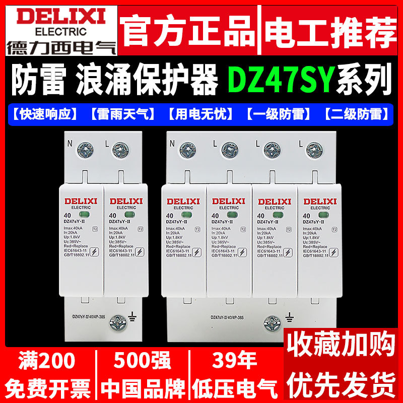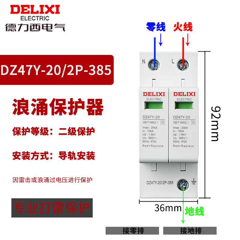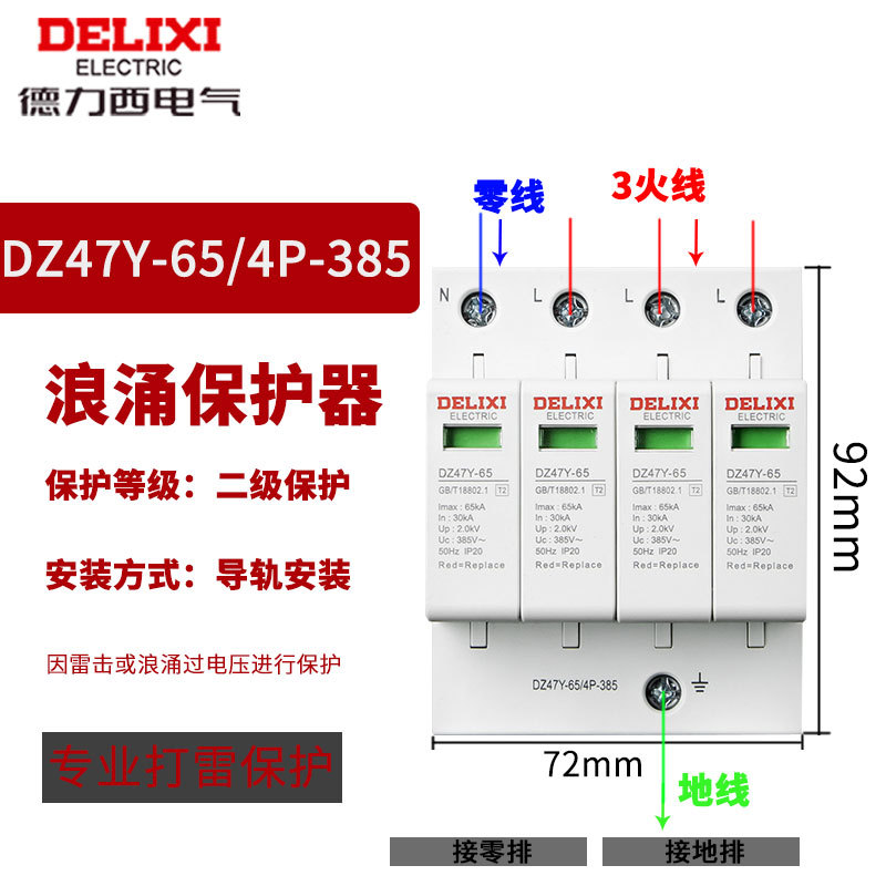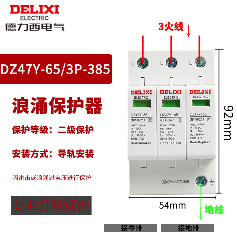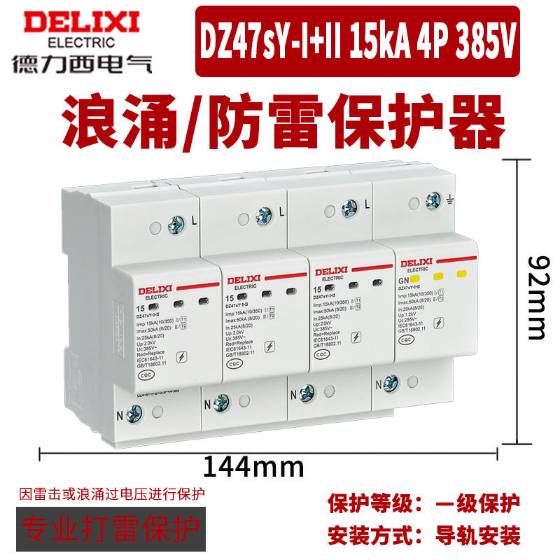 Удалитель перенапряжения Delixi DZ47Y-10KV бытовой молниеотвод 220V 380V перенапряжение 4P выключатель молниезащиты 2p
