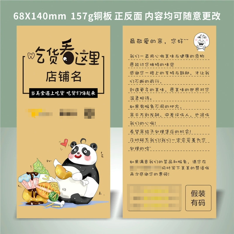 Карточки для кейтеринга, молочного чая, доставки еды, послепродажные карты Meituan и Ele.me, карты с рейтингом «пять звезд» для доставки еды, открытки, этикетки