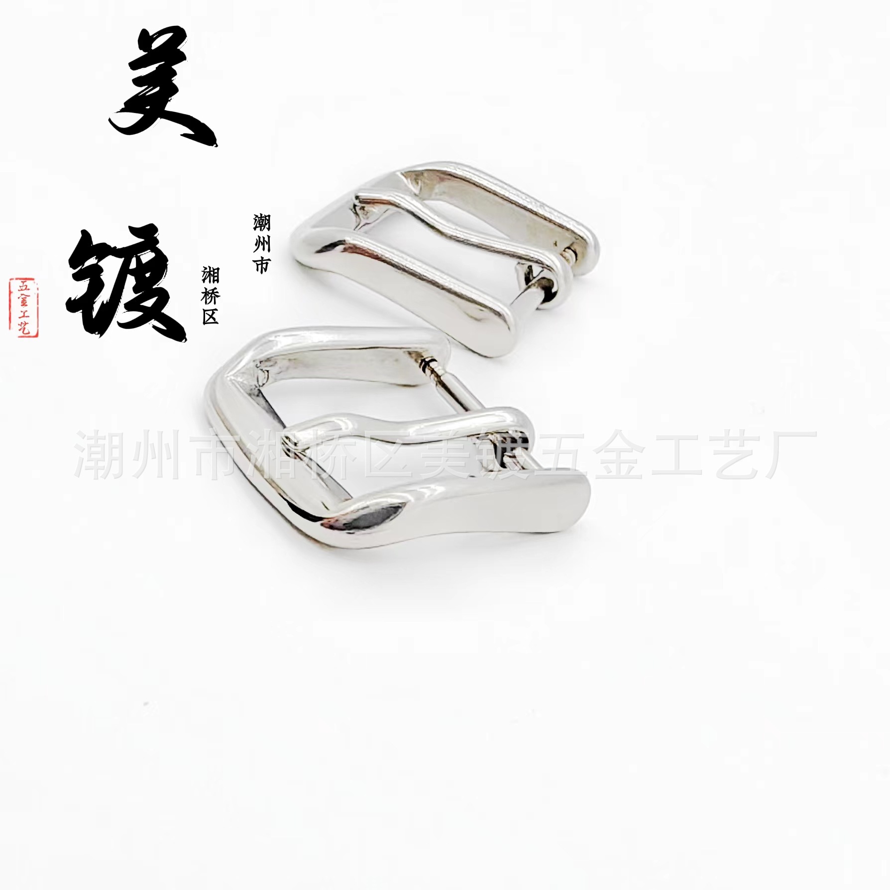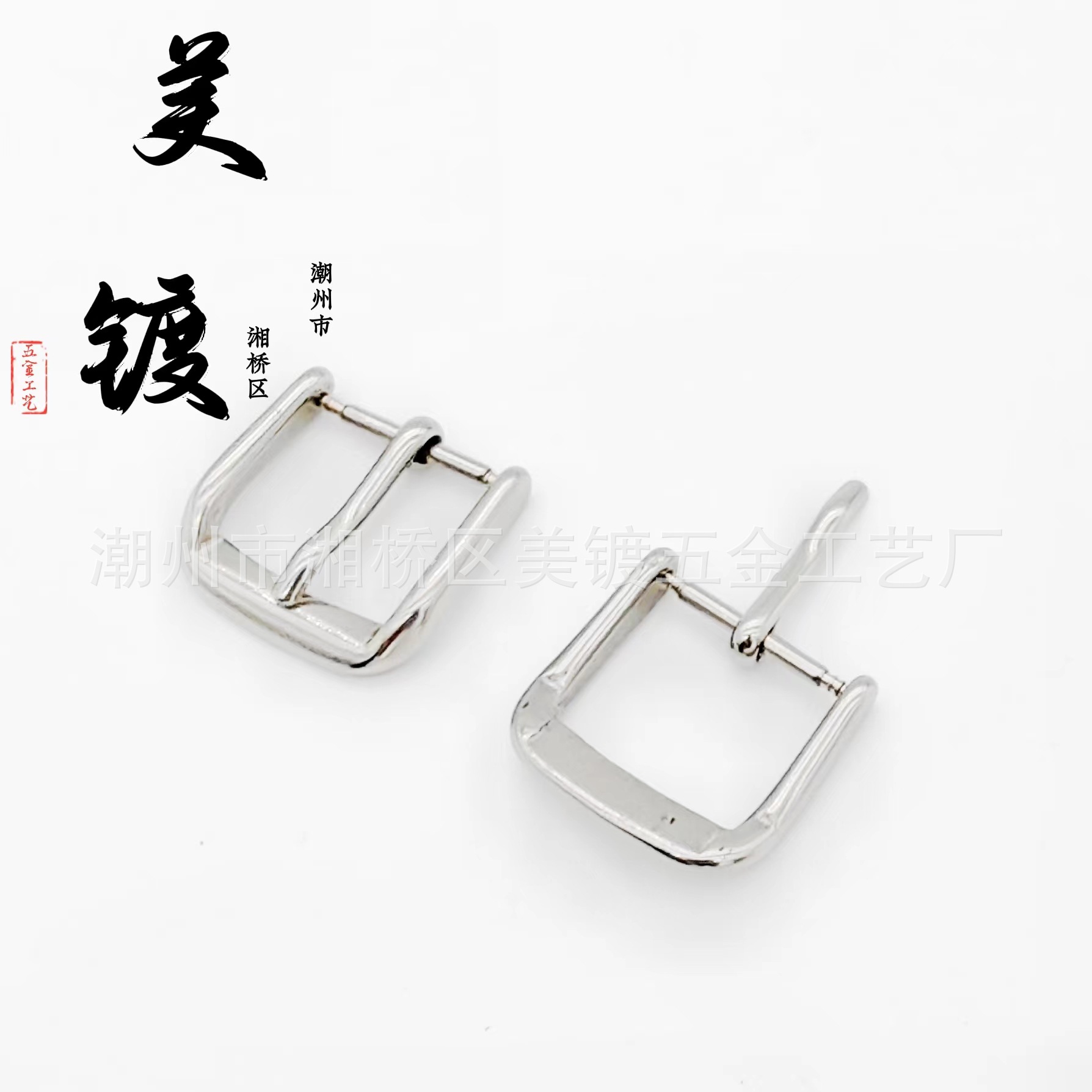 潮州市湘桥区美镀工艺厂是一个体经营企业,长期主营折叠扣、针扣、皮带按扣、暗扣、折叠安全扣、钩扣、蝴蝶扣。表扣是手表表带中间那部分活动表带的装置,多由不锈钢、钛金属制成。表扣由扣面和底架组成,扣面及底架的一端分别与表带连接。其中扣面为一体开槽,扣面底面有一圆形扣眼与底架上的拨钉相互锁扣;底架由架底、长臂、短臂组成,长臂和短臂的一端与架底转动连接,长臂的另一端与表带连接,短臂的另一端与扣面连接。