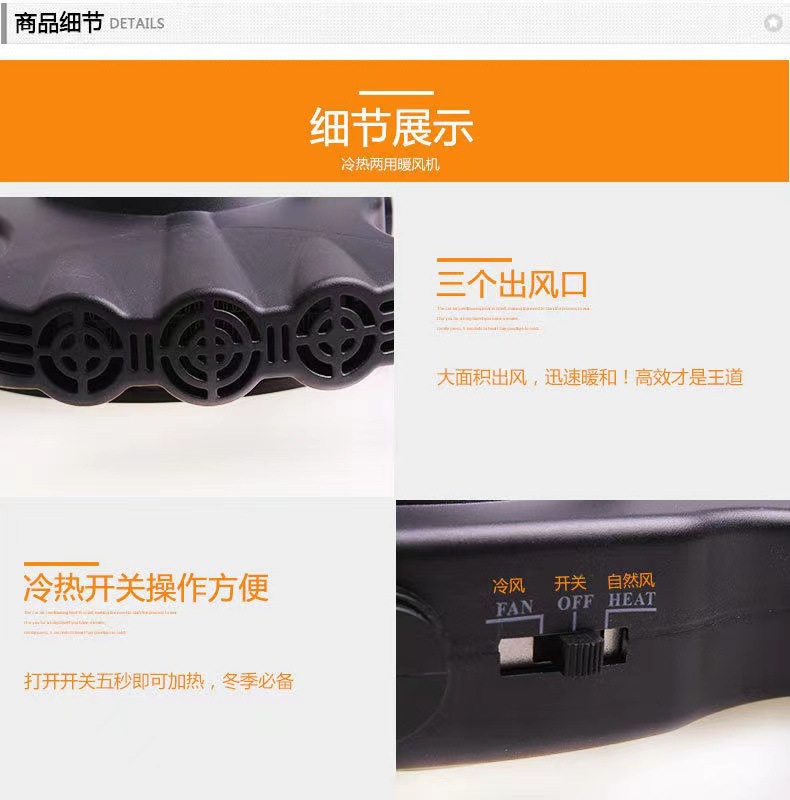 1、人性化设计有支架,三个出风口,大面积出风,迅速暖和,高效便捷