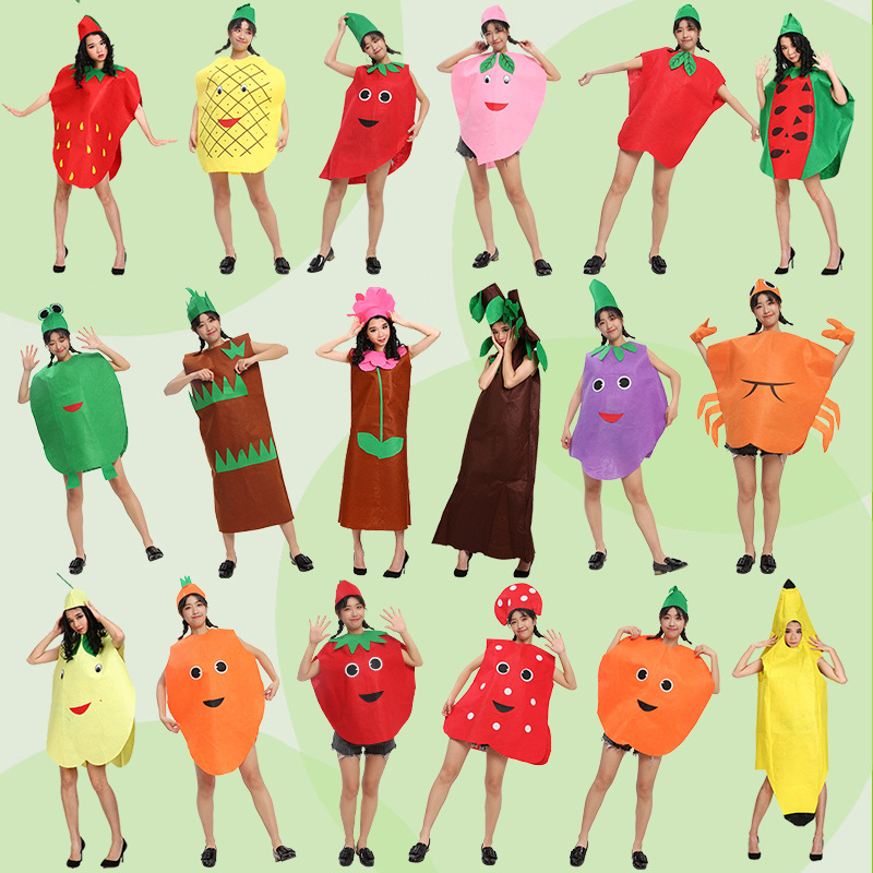 Одежда для выступлений на День детей для взрослых Нетканая одежда из фруктов и овощей ручной работы экологически чистая одежда для подиума