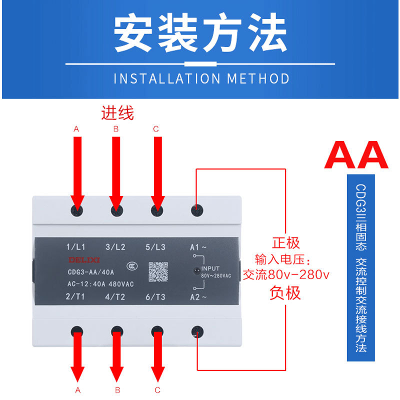 Delixi CDG3 трехфазное твердотельное реле DA DC управляемый AC AA 25A 60A 80A 100A 200A
