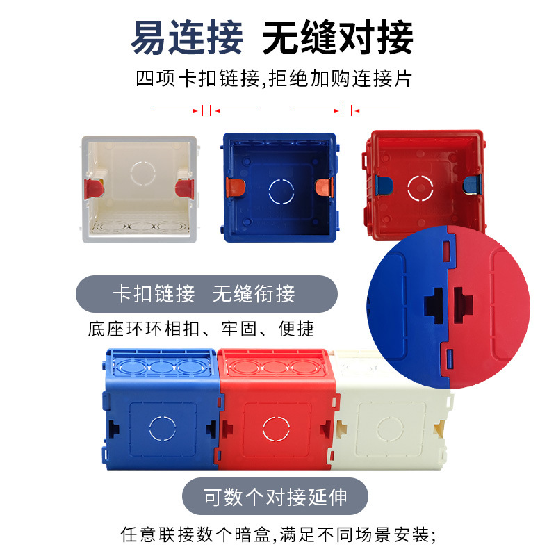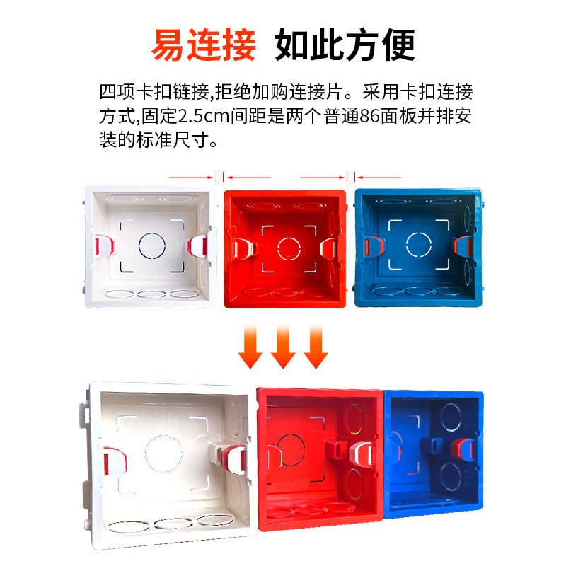86 Проводная коробка Нижняя коробка переключателя распределительная коробка из ПВХ Скрытая Трехцветная Обычная утолщенная проволочная коробка Нижняя коробка настенной панели переключателя