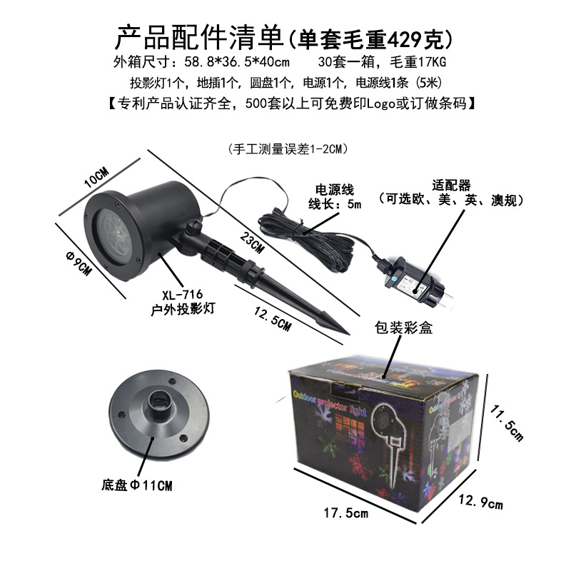 Рождество Светодиодный проекционный светильник сад газон Открытый Снежинка лампы цвет вращающийся праздник проекционный светильник