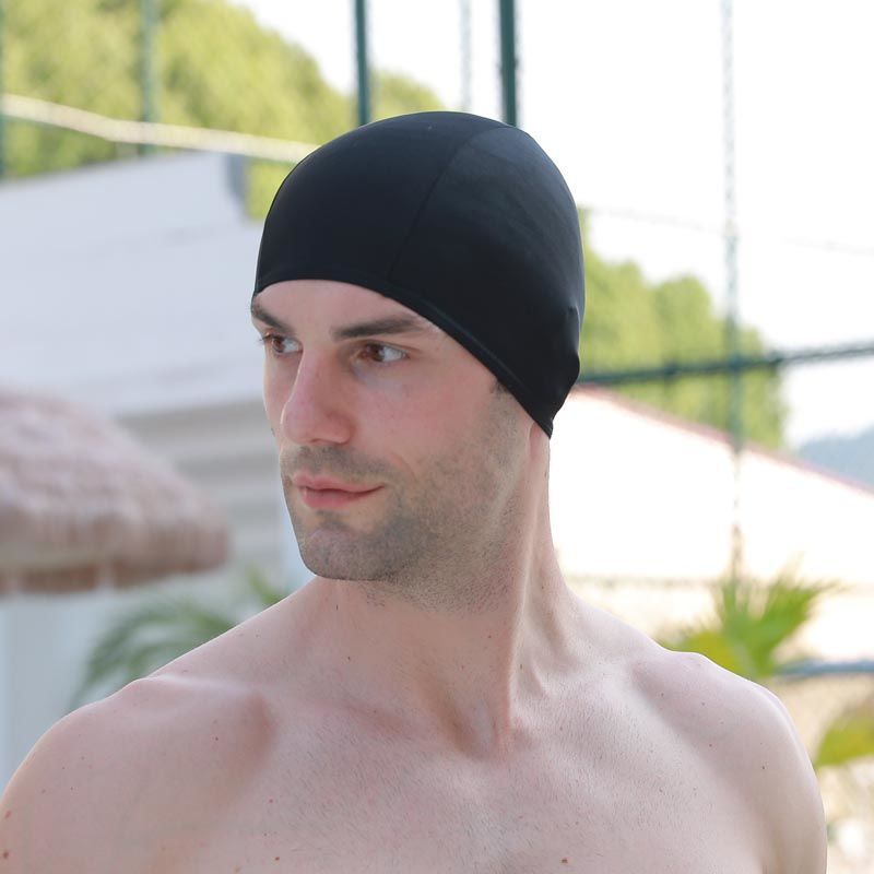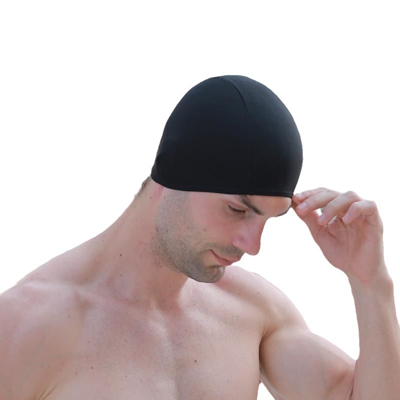 Мужские и женские шапочки для плавания для взрослых, разноцветные тканевые шапочки для плавания, картонная независимая упаковка, чистый черный, быстросохнущий уход за волосами, дышащий